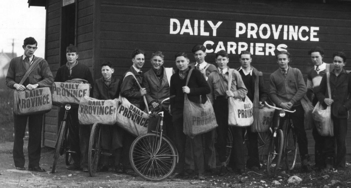 Tote bags carried by American newsboys in the 1940s
