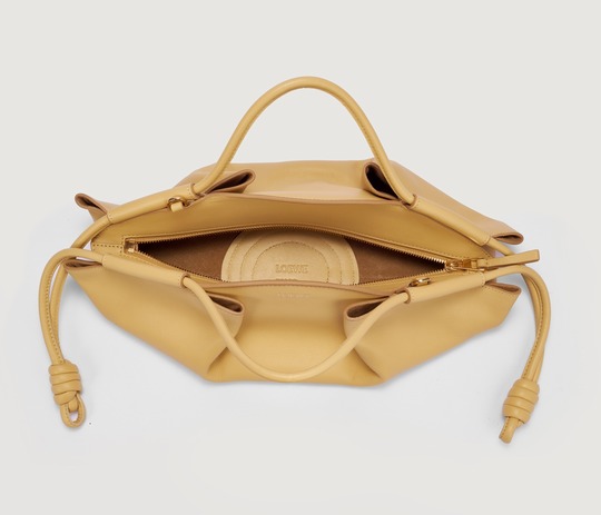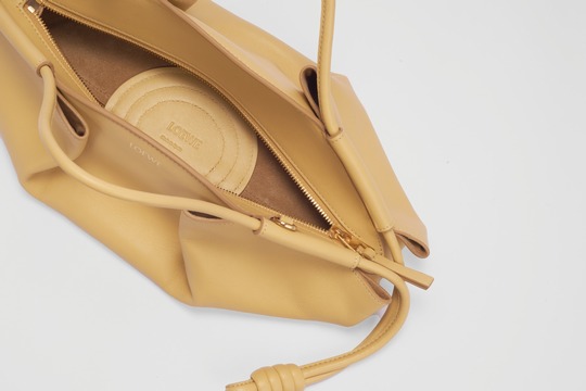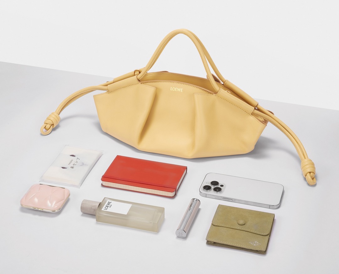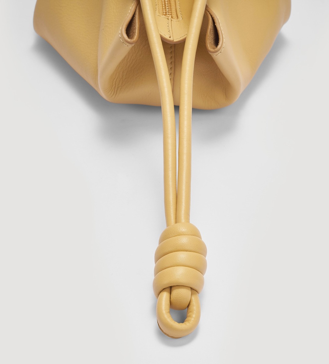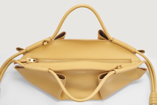 The ribbons on both sides are tied to form a knot element, which was first used on the Flamenco clutch bag launched by LOEWE in 1970. The coiled knot naturally falls on both sides of the bag, which is also one of the brand's most recognizable designs.