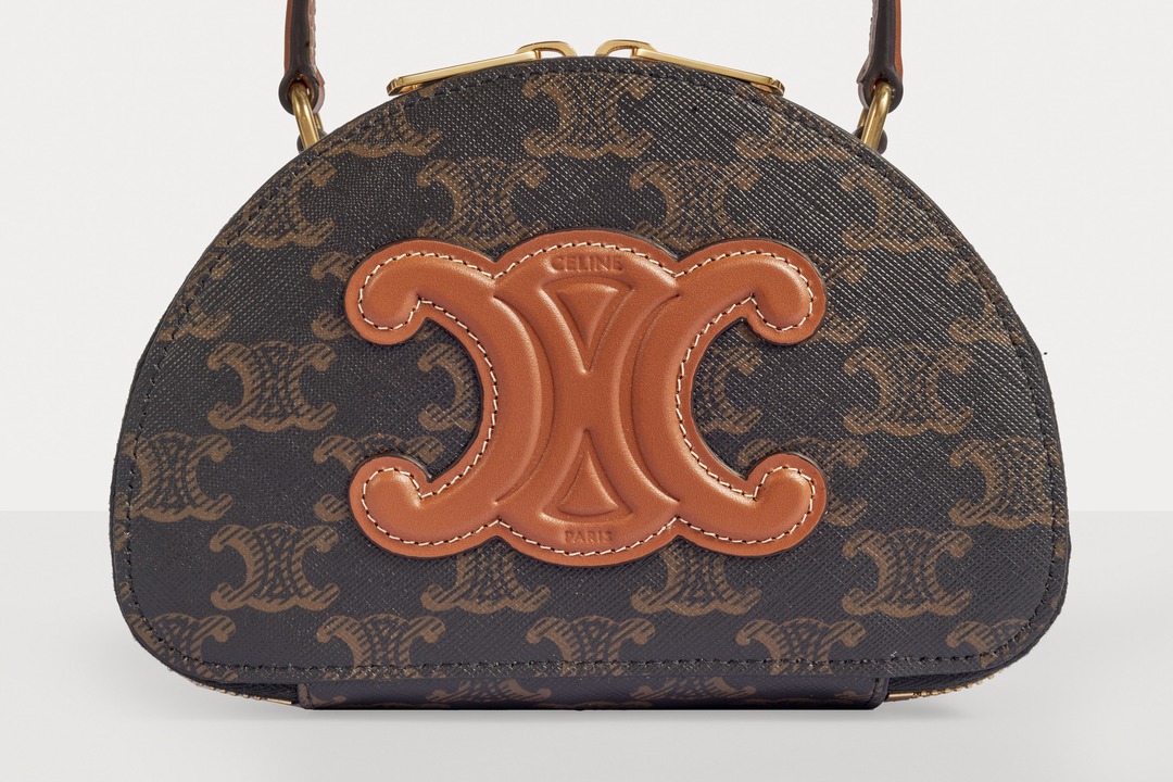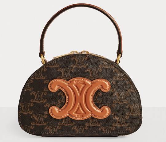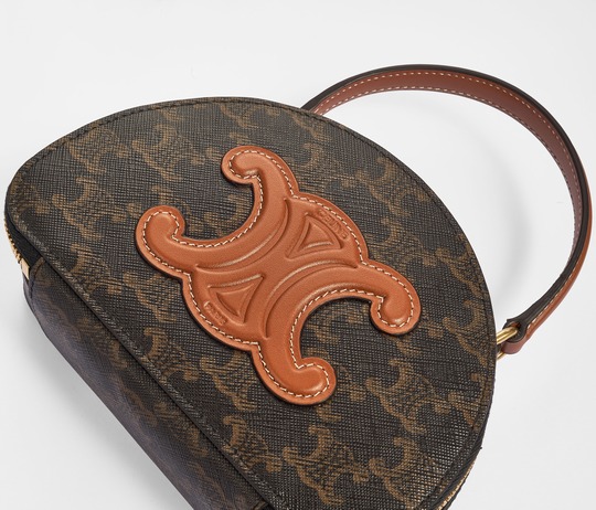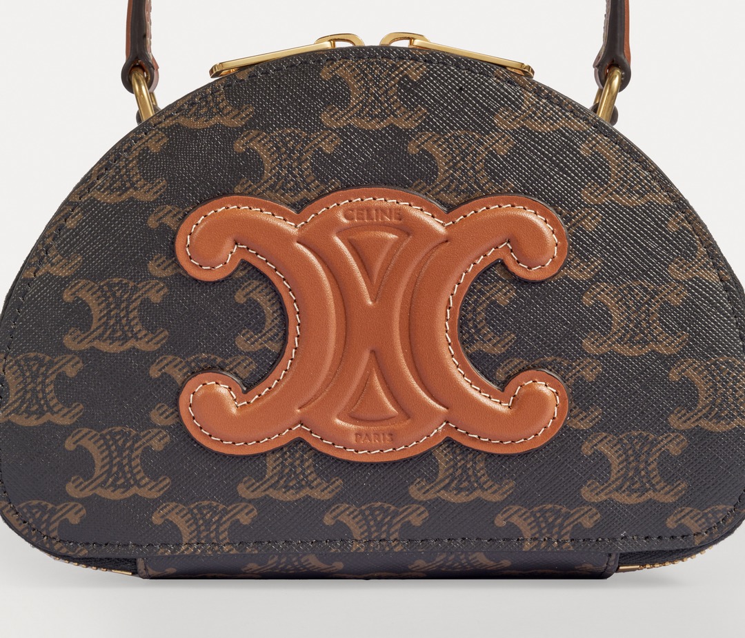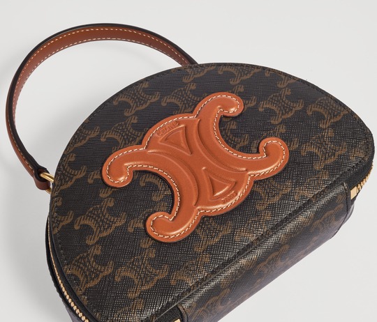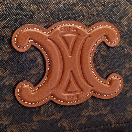 The "Cuir Triomphe" series debuted at the CELINE 2021 Fall/Winter show. The iconic "Triomphe" triumphal logo has evolved into an enlarged embossed calfskin patch , which is sewn into the center of the bag through embroidery . The off-white exposed stitching outlines the outline, and the black oil edge creates a relief-like three-dimensional effect.The calfskin patch is lined with Triomphe monogram canvas as the background, and the triumphal pattern is created with a gradient of dark and light brown shadows, which contrasts with the calfskin patch and has excellent layering and recognition. We are all familiar with "Triomphe monogram canvas" . From the 1970s to the 1980s, CELINE launched the C Sulky and Macadam monogram canvas series handbags with the triumph logo as the main element. Until the 2000s, when the monogram trend receded, the CELINE canvas series was also discontinued.
