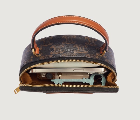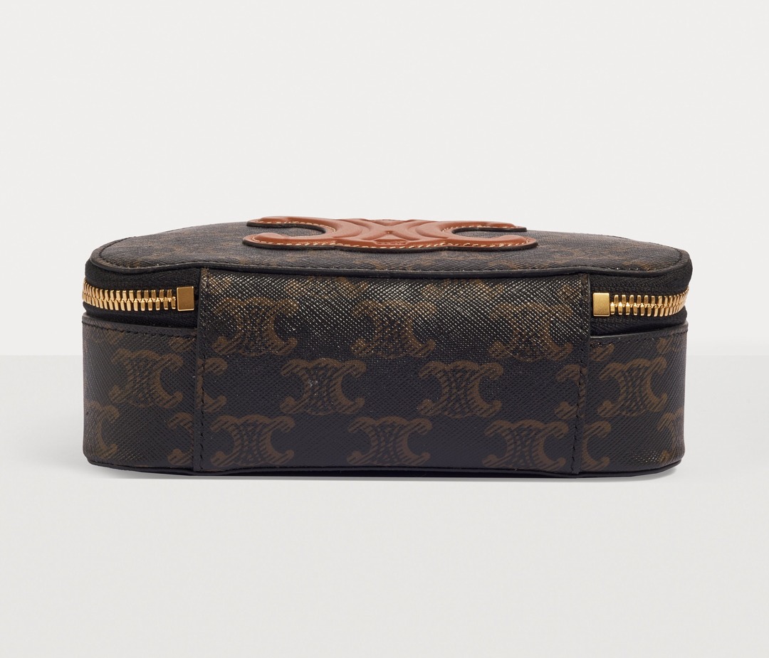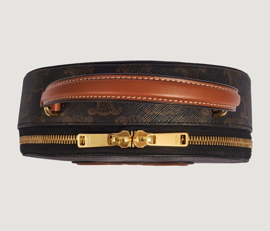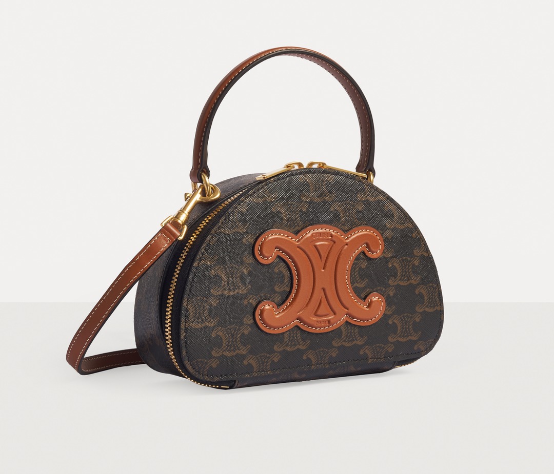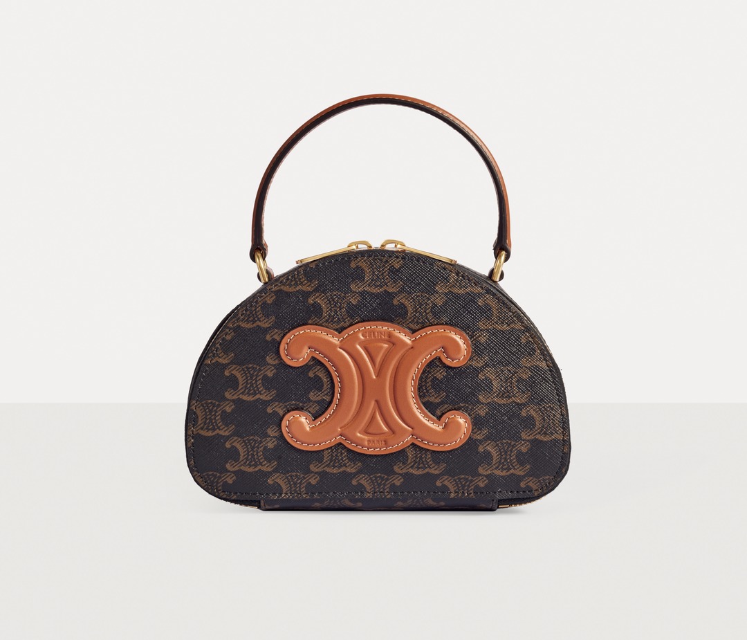 The "Cuir Triomphe" series debuted at the CELINE 2021 Fall/Winter show. The iconic "Triomphe" triumphal logo has evolved into an enlarged embossed calfskin patch , which is sewn into the center of the bag through embroidery . The off-white exposed stitching outlines the outline, and the black oil edge creates a relief-like three-dimensional effect.The calfskin patch is lined with Triomphe monogram canvas as the background, and the triumphal pattern is created with a gradient of dark and light brown shadows, which contrasts with the calfskin patch and has excellent layering and recognition. We are all familiar with "Triomphe monogram canvas" . From the 1970s to the 1980s, CELINE launched the C Sulky and Macadam monogram canvas series handbags with the triumph logo as the main element. Until the 2000s, when the monogram trend receded, the CELINE canvas series was also discontinued.