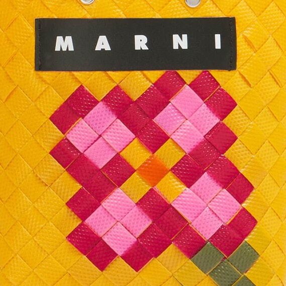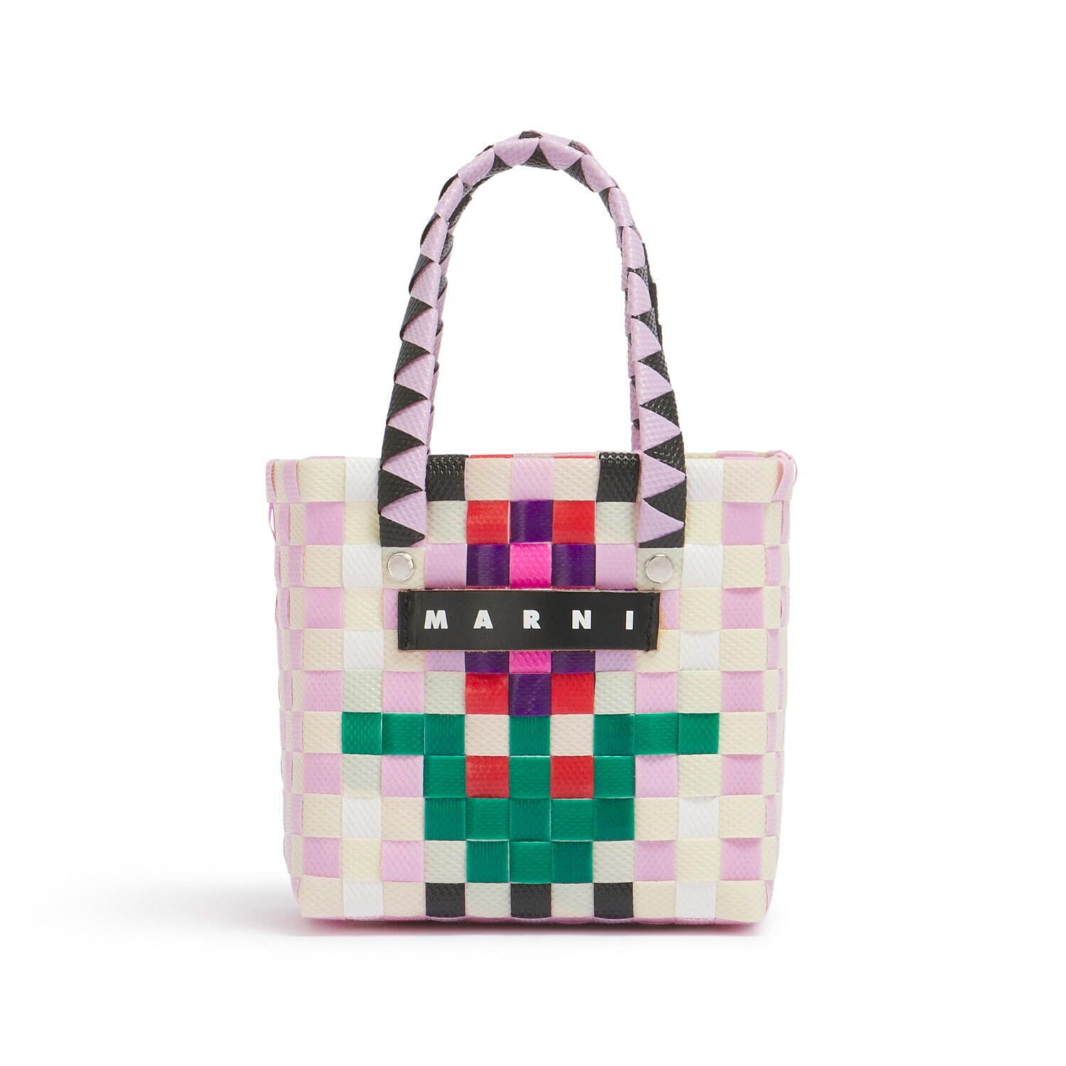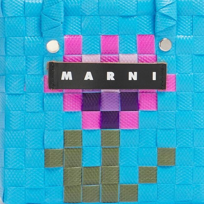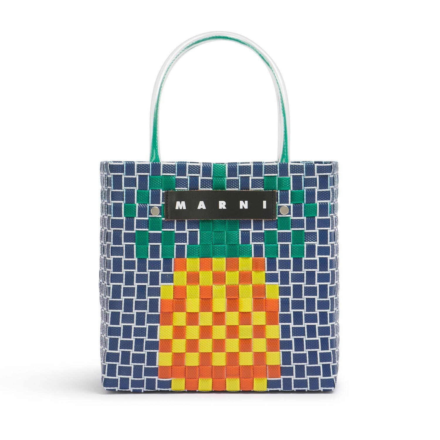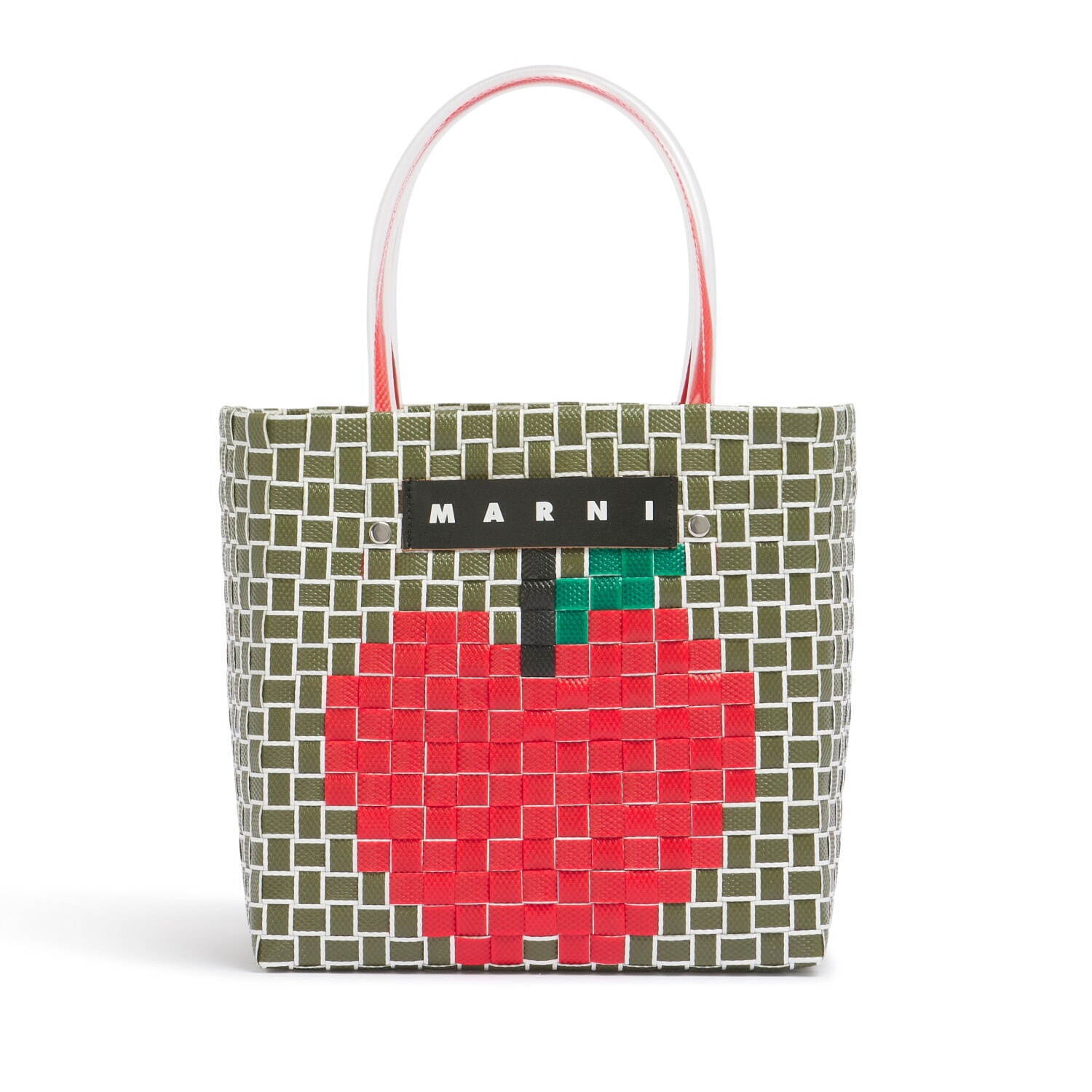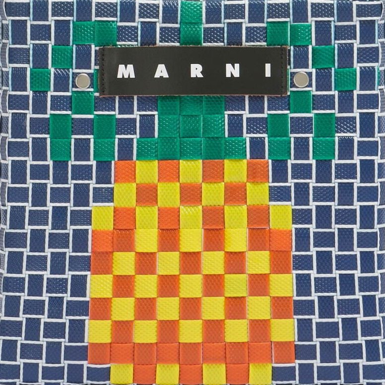 Marni's iconic hand-woven basket bag has a new style this summer. The bag body is made of hand-woven multi-colored strips . The highlight is that the bag body uses colorful blocks to present pineapple , apple and cherry patterns, which are reminiscent of retro pixel-style games. The colorful fruit patterns give people a juicy summer feeling.