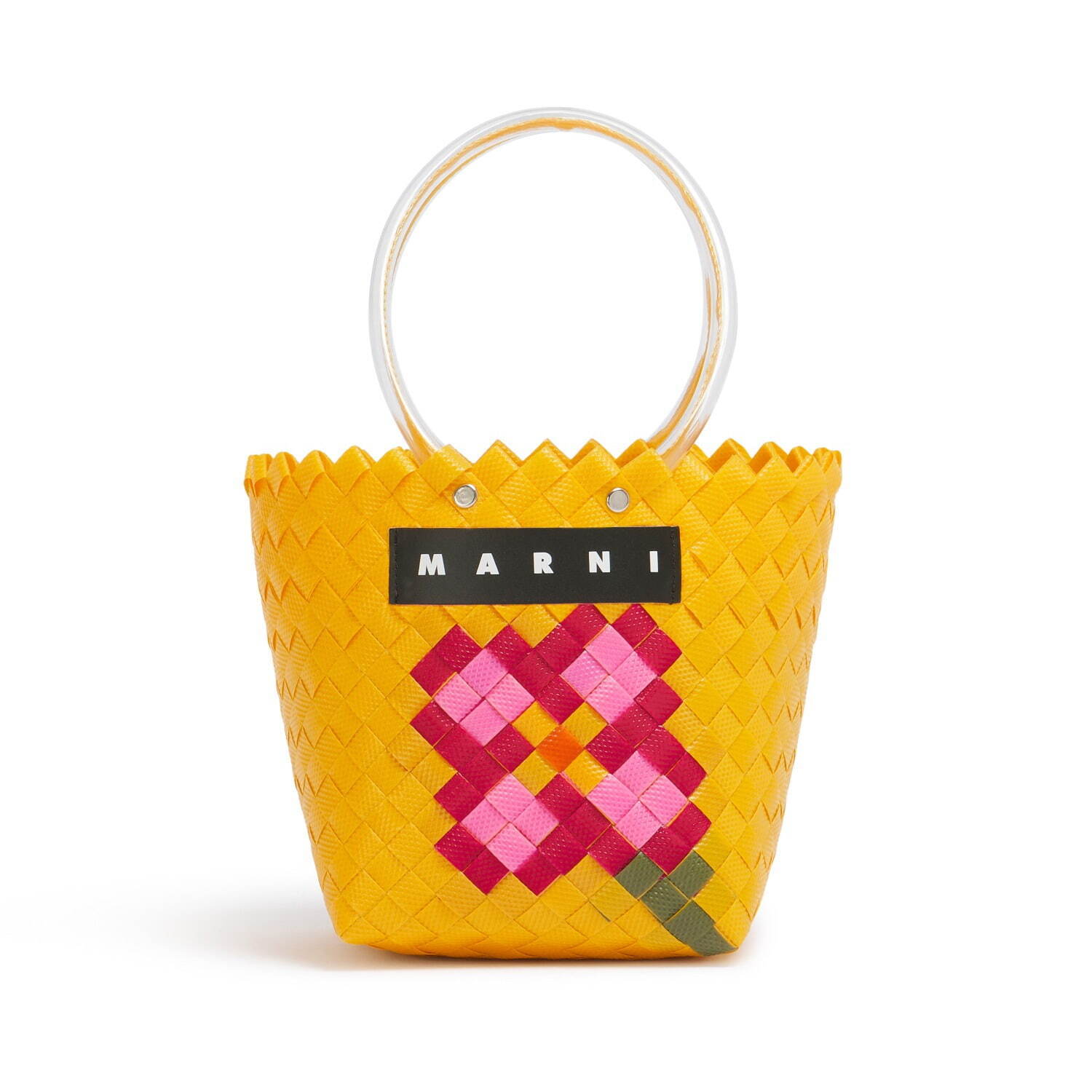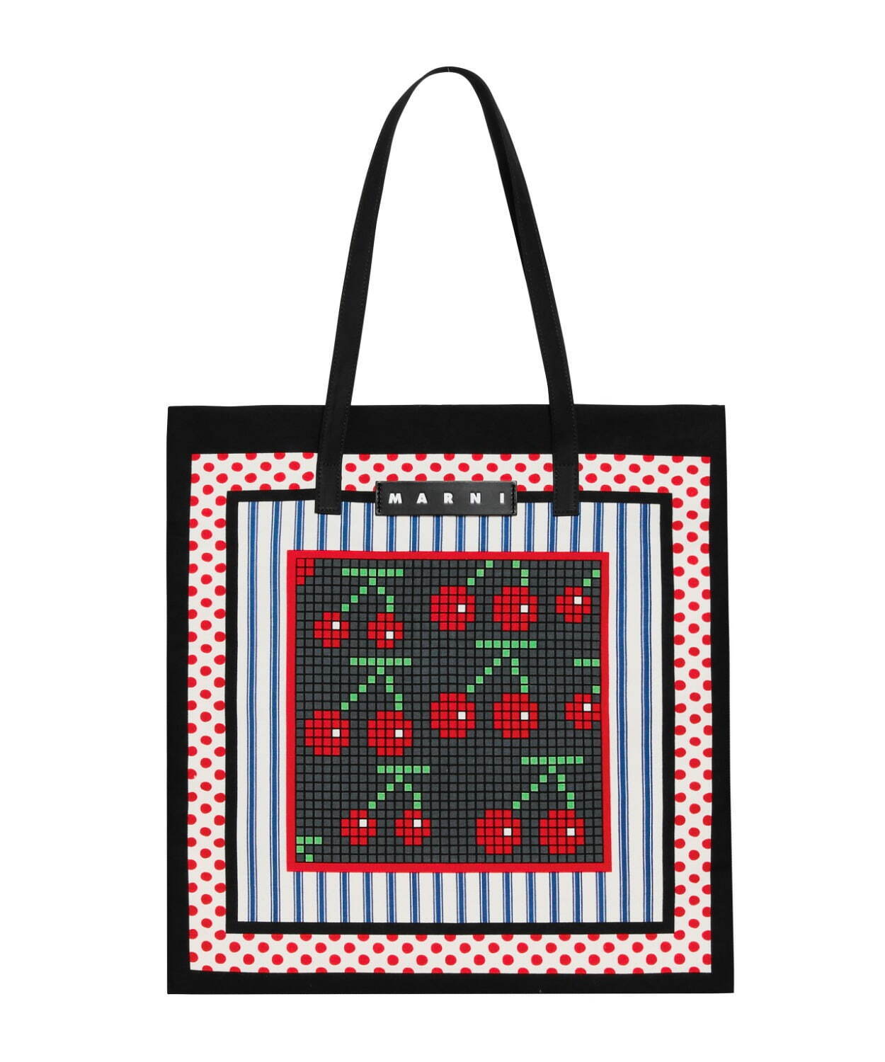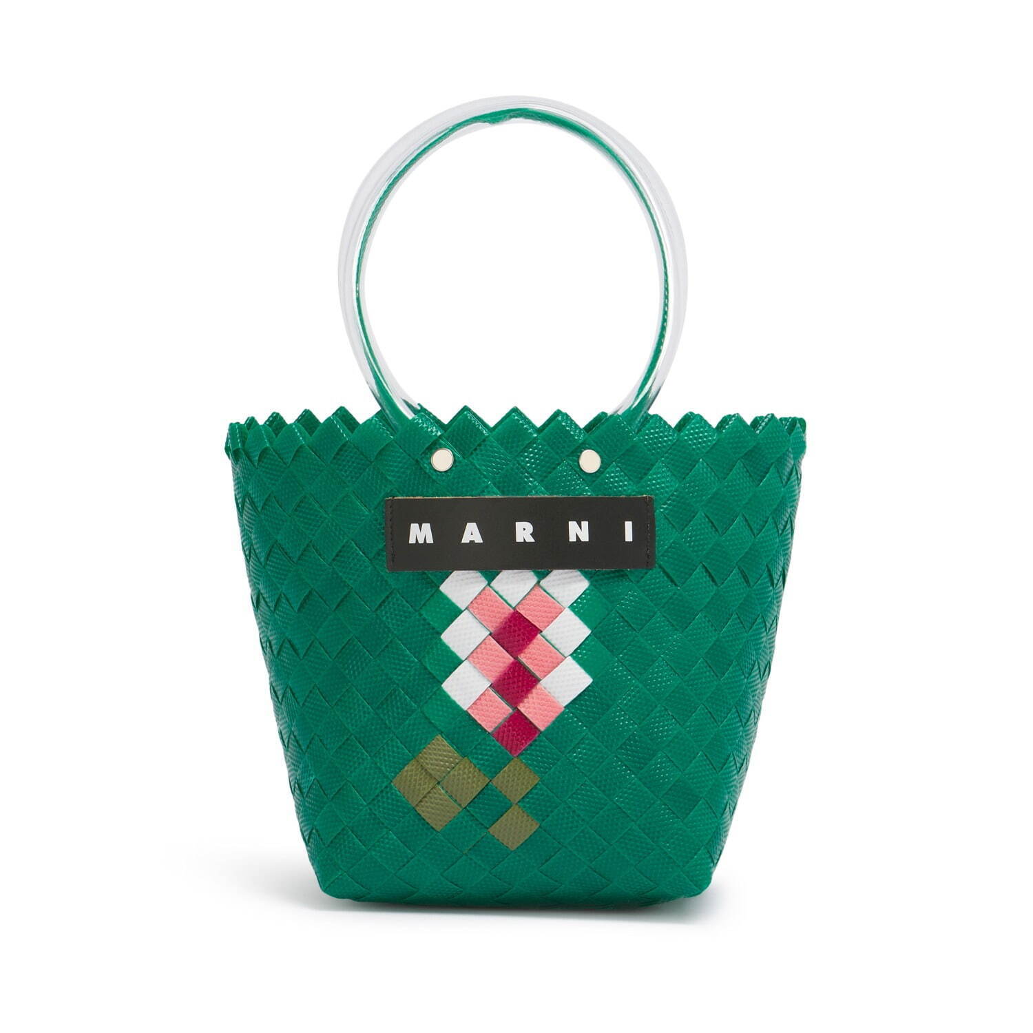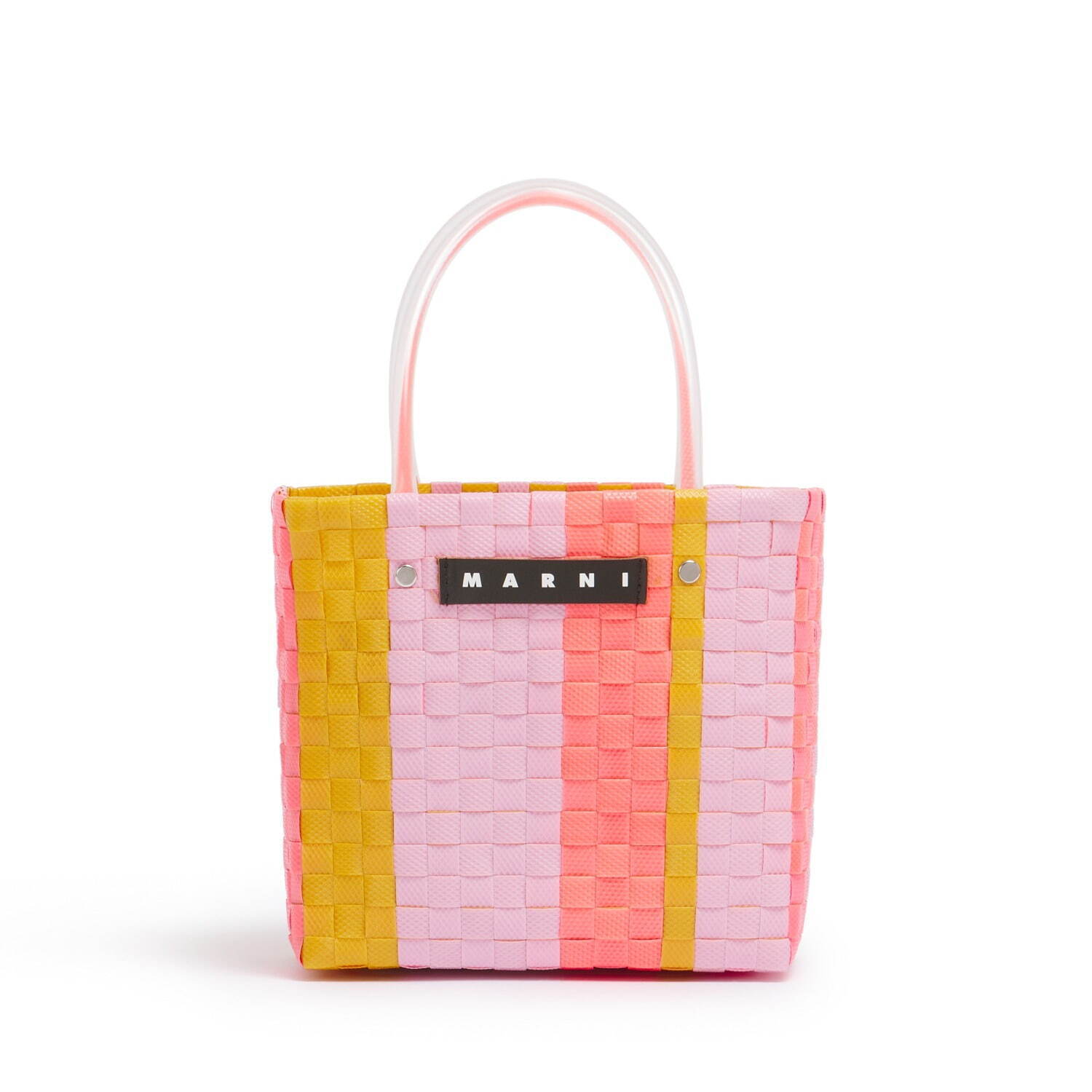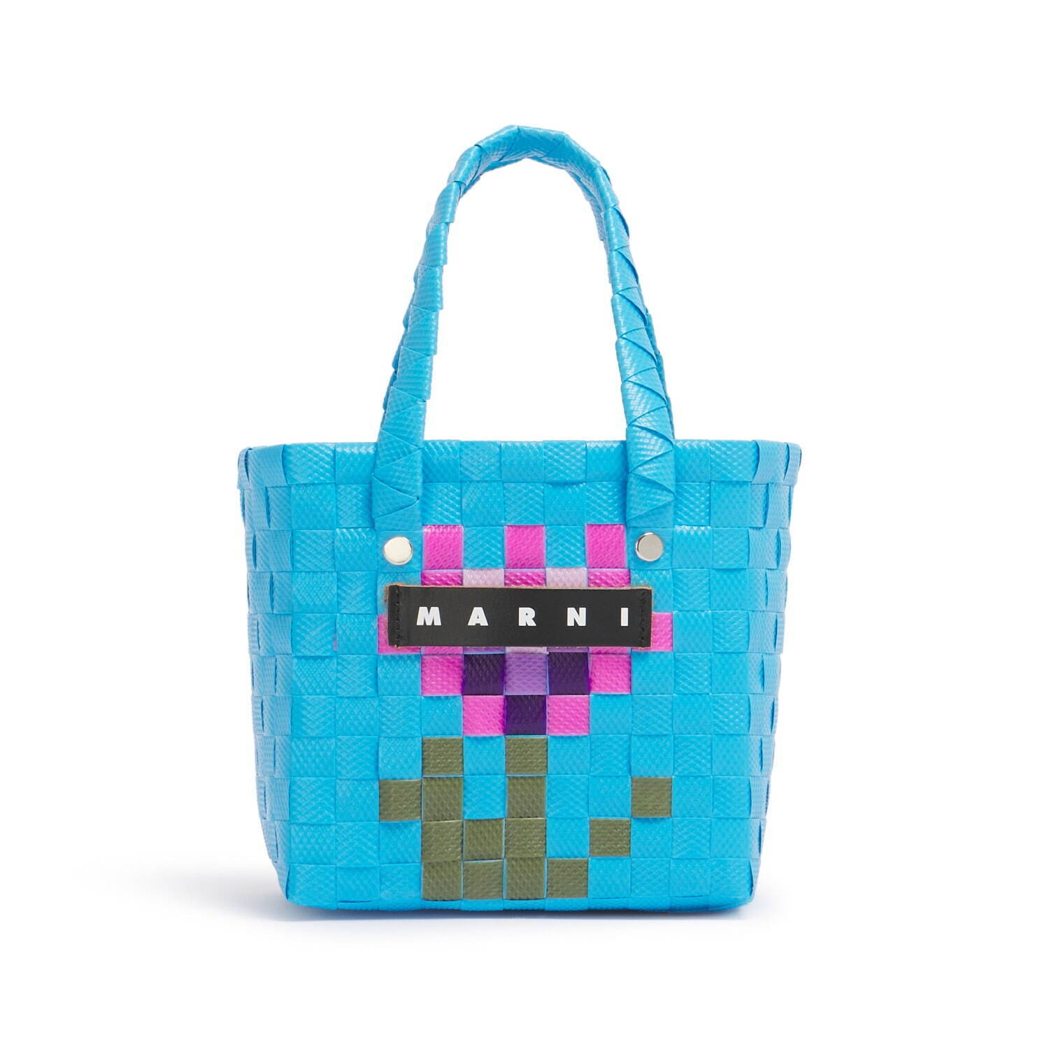 Marni's iconic hand-woven basket bag has a new style this summer. The bag body is made of hand-woven multi-colored strips . The highlight is that the bag body uses colorful blocks to present pineapple , apple and cherry patterns, which are reminiscent of retro pixel-style games. The colorful fruit patterns give people a juicy summer feeling.