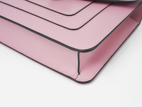 The bag is lined with Roman garnet-colored grosgrain, which is light and wear-resistant. The combination of light and dark red is pleasing to the eye and can also enhance the romantic index of a date. It is thoughtfully equipped with a round makeup mirror decorated with pink calfskin , which is just the right size to fit into the back pocket. The interior is designed as a single-layer compartment , and the side pleat structure has a certain degree of ductility. Because the bag itself is relatively slim, it is not recommended to fill the bag too much.