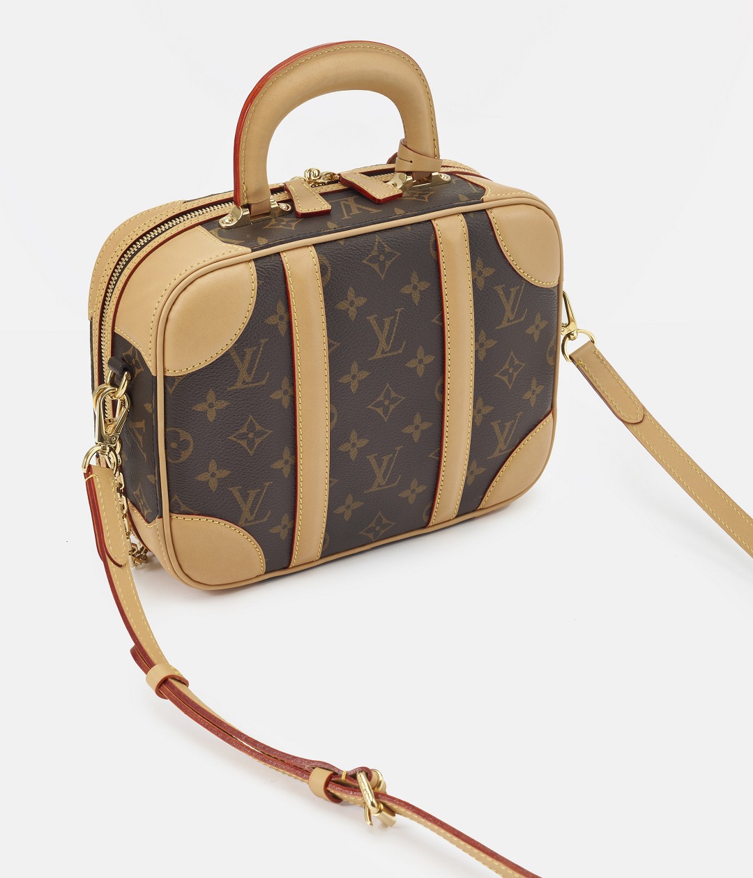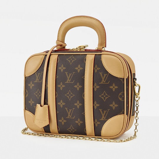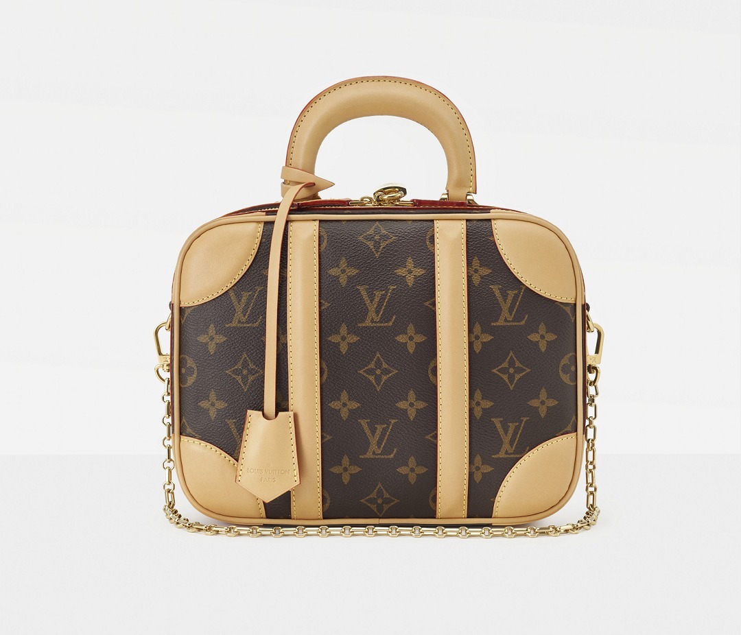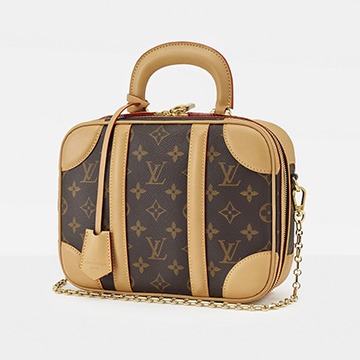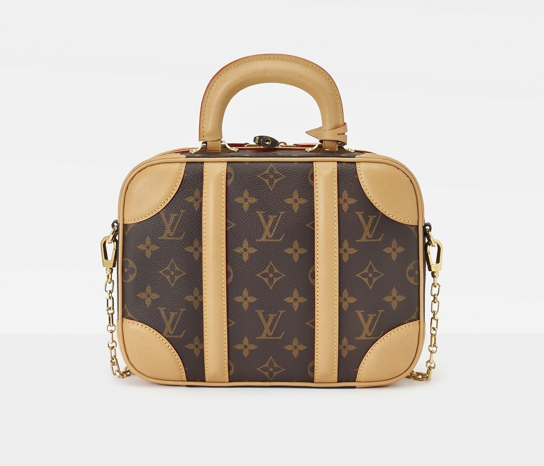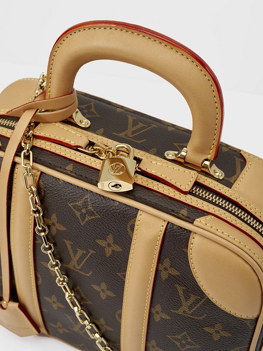 The LV Mini Luggage handbag is inspired by antique suitcases from the 1930s . It continues the classic combination of Monogram canvas and original cowhide. The hard handles and leather corners give the bag a classic feel, while the rounded and solid shape adds a contrasting cuteness. Although there is a Mini in the name, the capacity of this bag is comparable to that of a small travel bag.