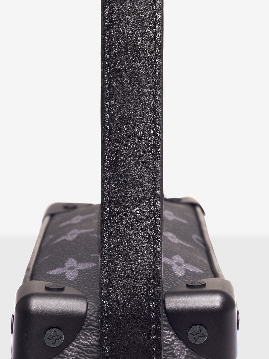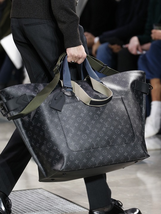 The Monogram Eclipse made its debut at the 2016 Fall/Winter Men's Fashion Show, with a dark gray-black coated canvas as the base and a light gray Monogram pattern as the embellishment; it was brought back by Virgil Abloh in the 2019 Fall/Winter collection and launched as the "New Classics" series of handbags.
