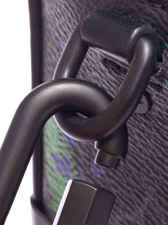 The shoulder strap of the bag is a black cowhide + resin chain design, which echoes the black chain decoration on the front zipper loop, creating a rough and industrial style. The chain is engraved with a delicate LV logo, and the last section is a hook design , so the shoulder strap can be removed, but the length cannot be adjusted, suitable for shoulder or hand holding.