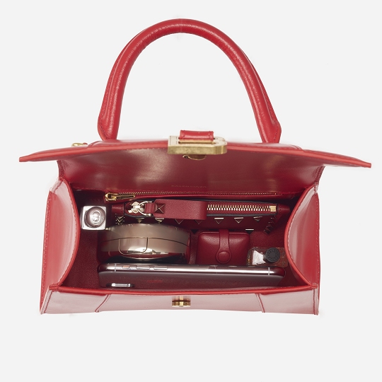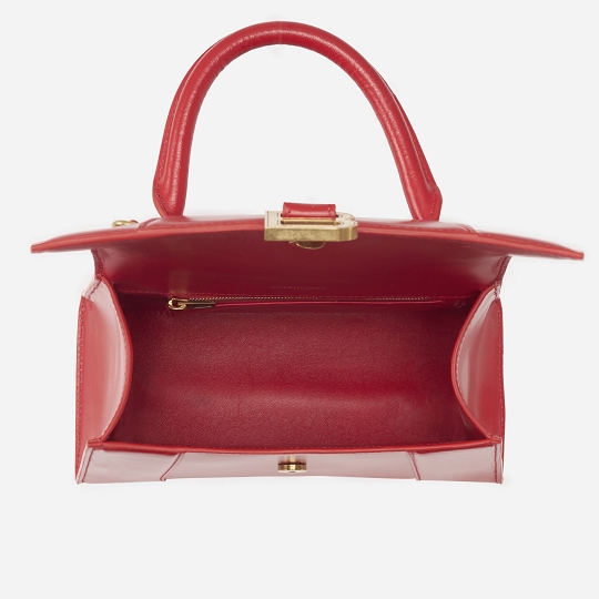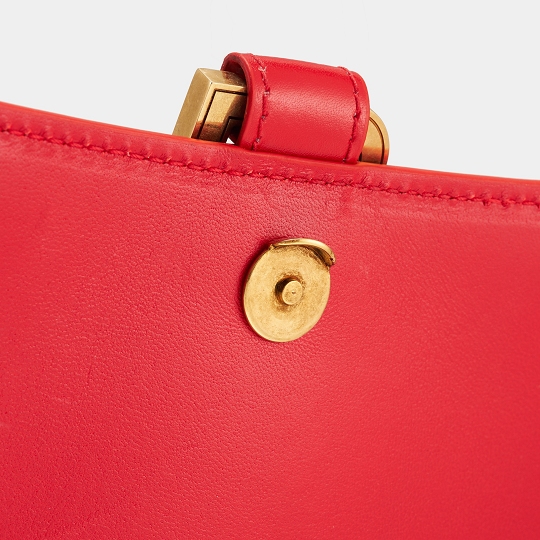 The bag body adopts the Top Handle single handle structure, which is fixed on both sides of the top of the bag and connected to the shoulder strap buckle. The seams and the bag body are presented in a strong red color , and the shiny calfskin is particularly delicate. The narrow top and wide bottom structure is conducive to the stability of the bag body. The inward-retracted side design echoes the arched arc of the bottom of the bag and the semi-circular handle. The bottom is a dome-like arc design , which not only reduces wear and tear, but also makes the bag look particularly upright.