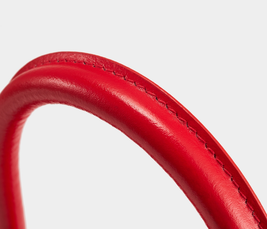 The red painted edge matches the color of the bag, and with the fine and neat stitching, it outlines the contour of the bag smoothly.