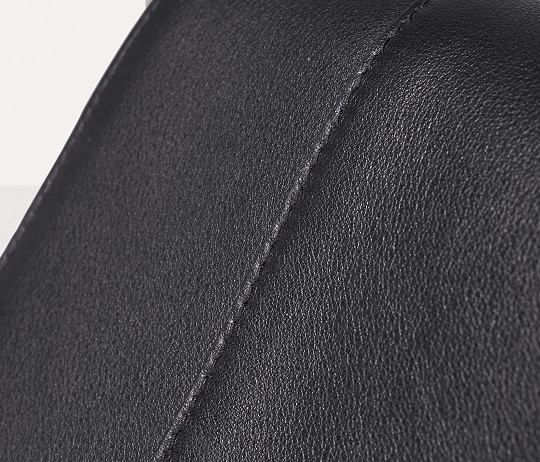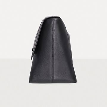 Another major feature of this bag is the All-Black color scheme . The body of the bag is made of semi-matte calfskin , with black matte coated brass hardware, which is full of aura from inside to outside. The minimalist color scheme highlights the silhouette of the bag, like a contemporary sculpture.