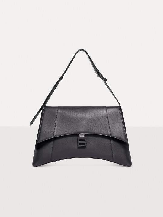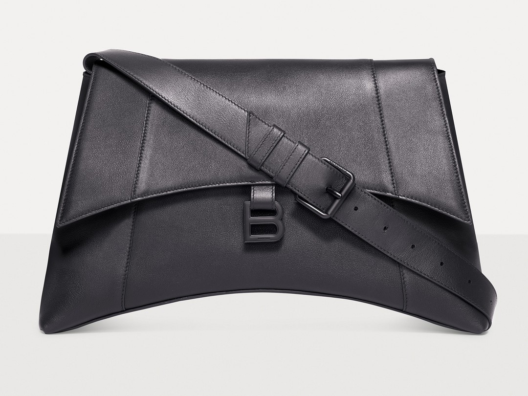 Balenciaga's Fall 21 collection is based on the concept of "daily wardrobe" , aiming to create comfortable items suitable for outdoor travel for fashion lovers. The hourglass bag is transformed into a new Downtown shoulder bag . You can still see the basic elements such as the arched bottom and curved flap . The biggest difference is that the bag body is made of soft calfskin . The naturally loose silhouette reduces the solemn atmosphere and also has a bit of the charm of a vintage bag.