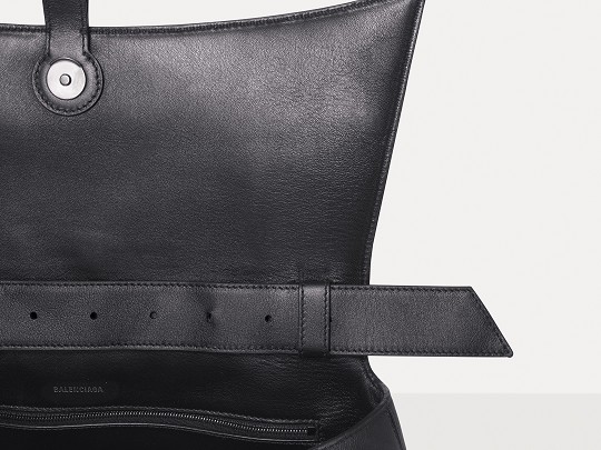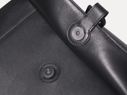 The B Logo buckle is the most obvious brand logo on this bag. It is made of black matte coated brass . The minimalist cool black color gives people a modern and tough feeling. The hidden magnetic buckle can be easily opened by just pulling up the buckle.