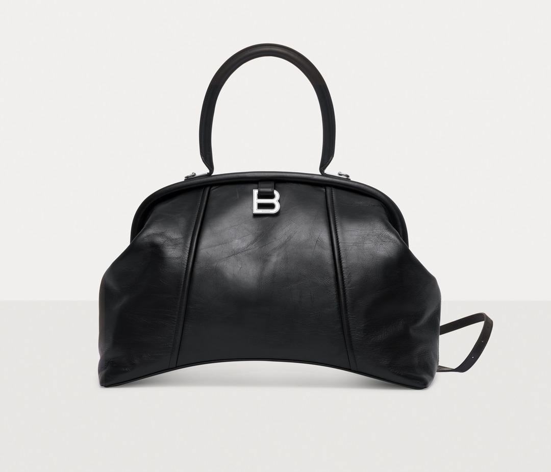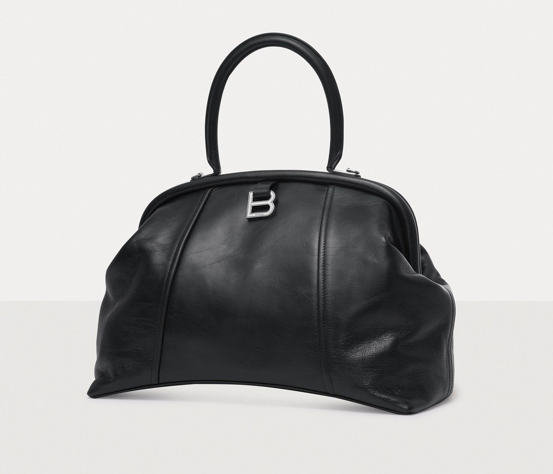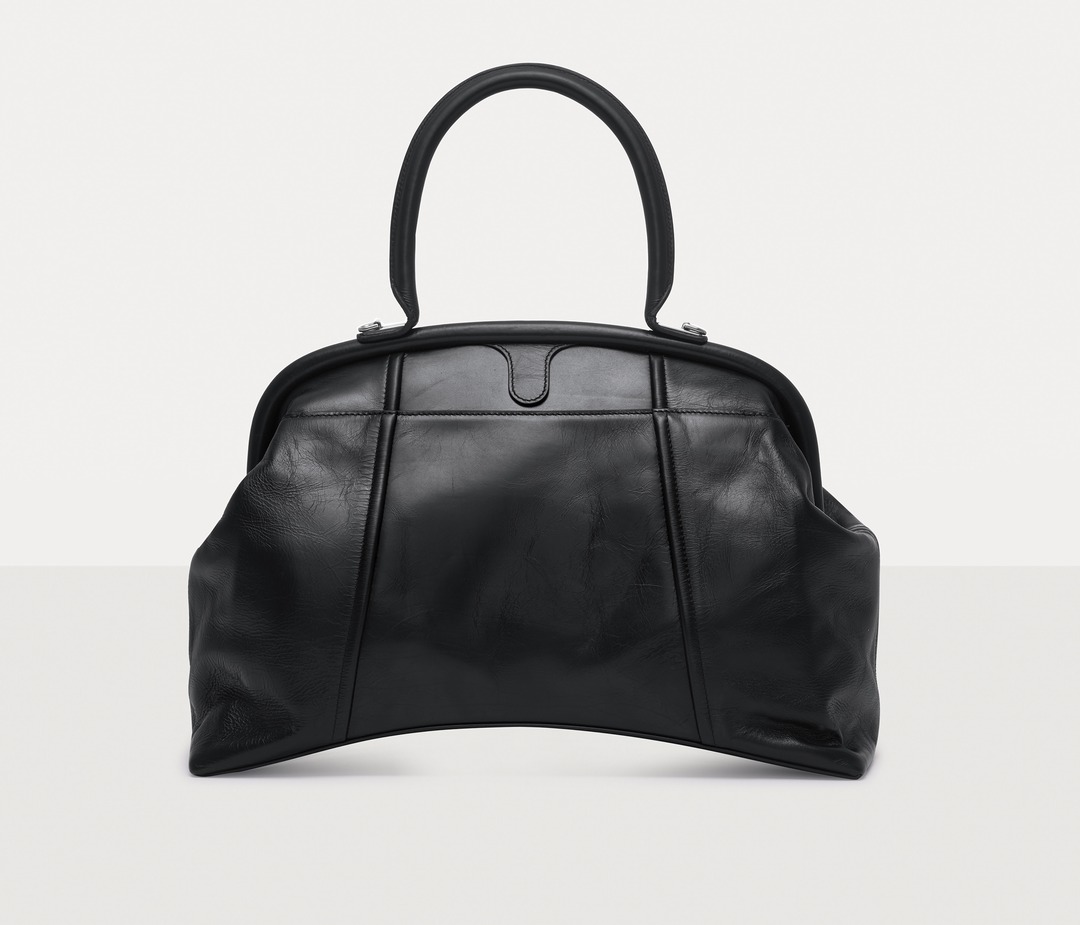 The large Editor continues the iconic arched base , inspired by the Basque-Waist waist-hugging fashion designed by the brand's founder Cristóbal Balenciaga; the Editor presents a crisp, soft and full bag shape, like a travel bag.
