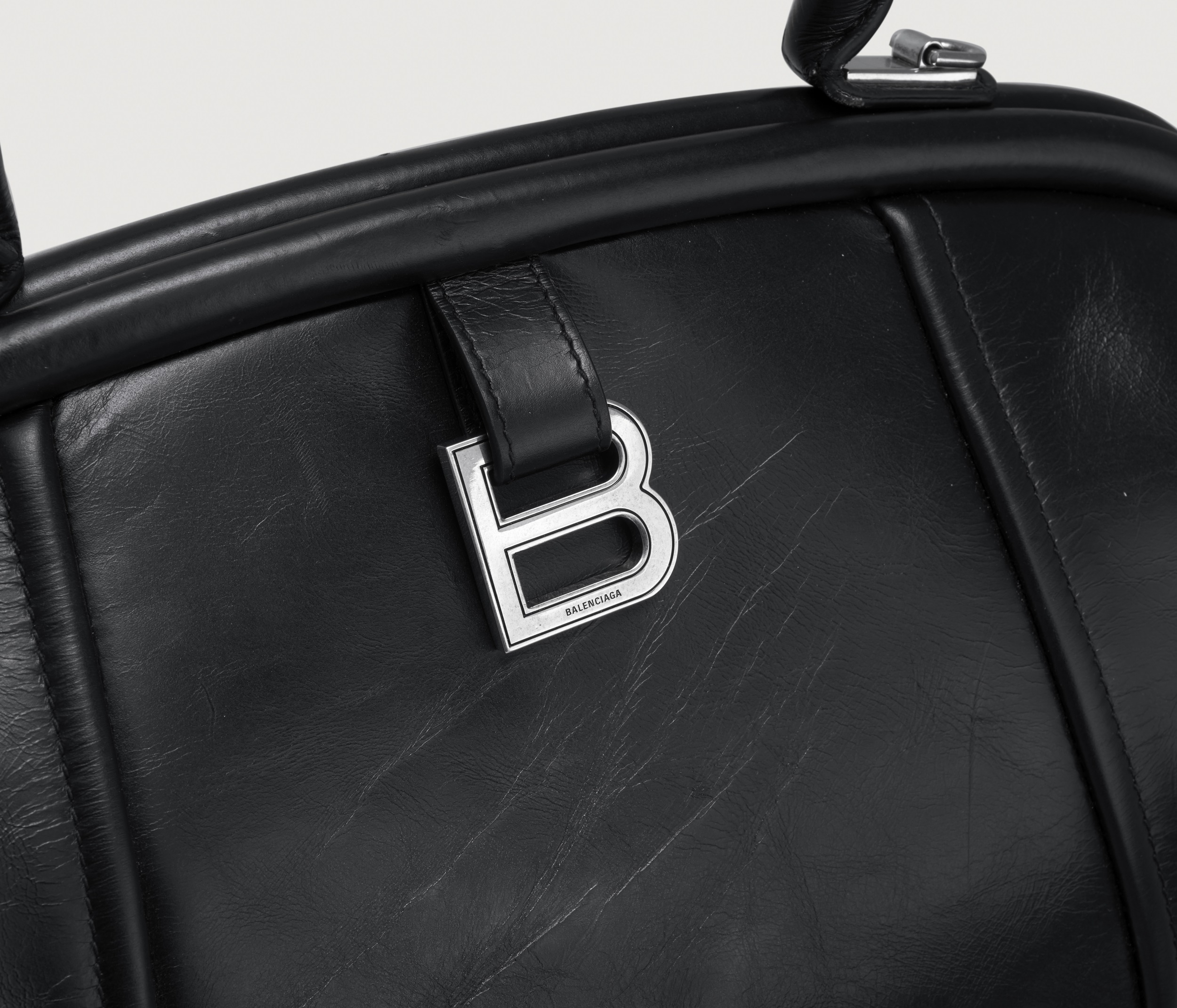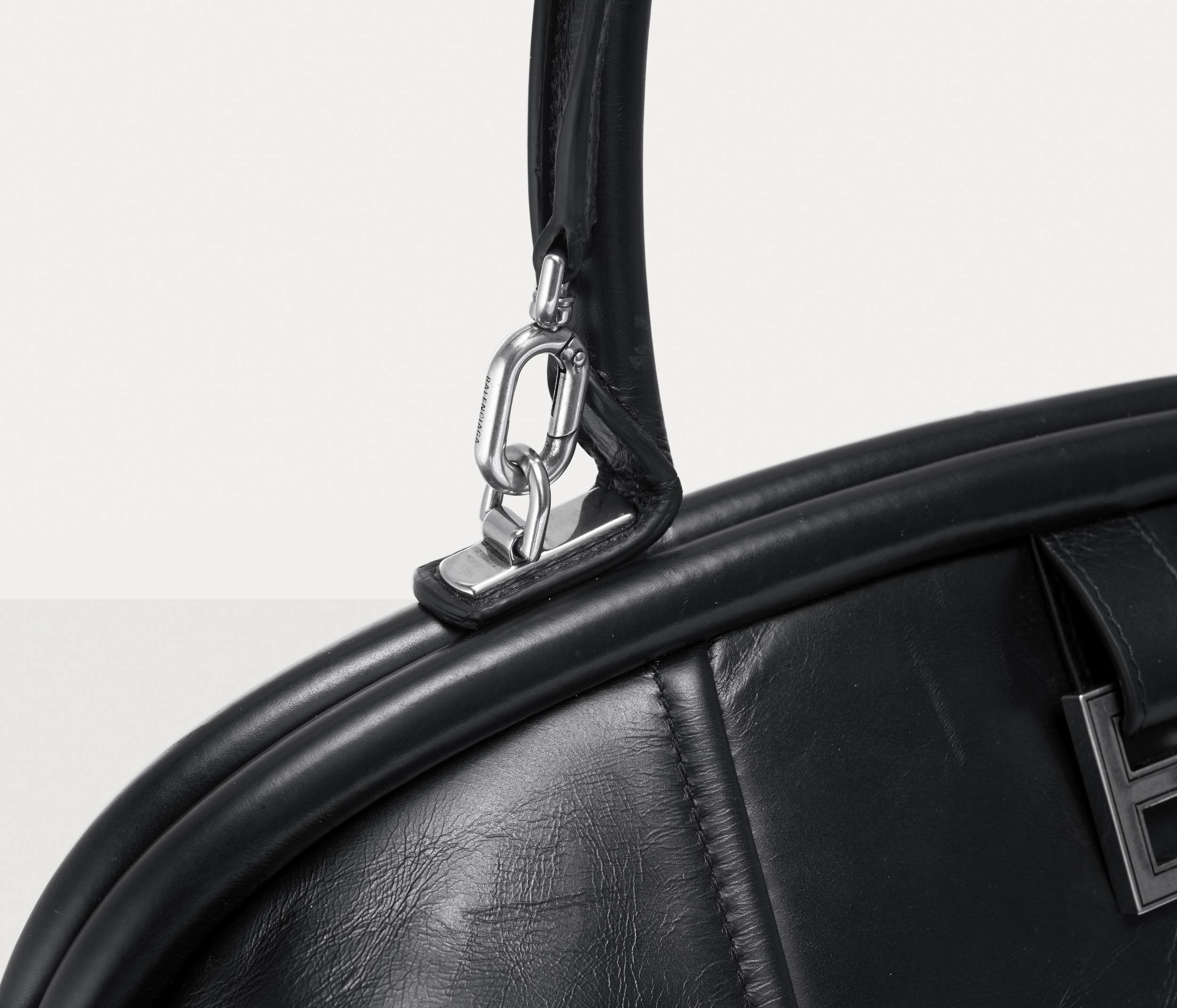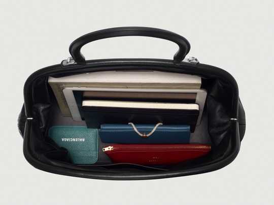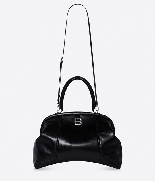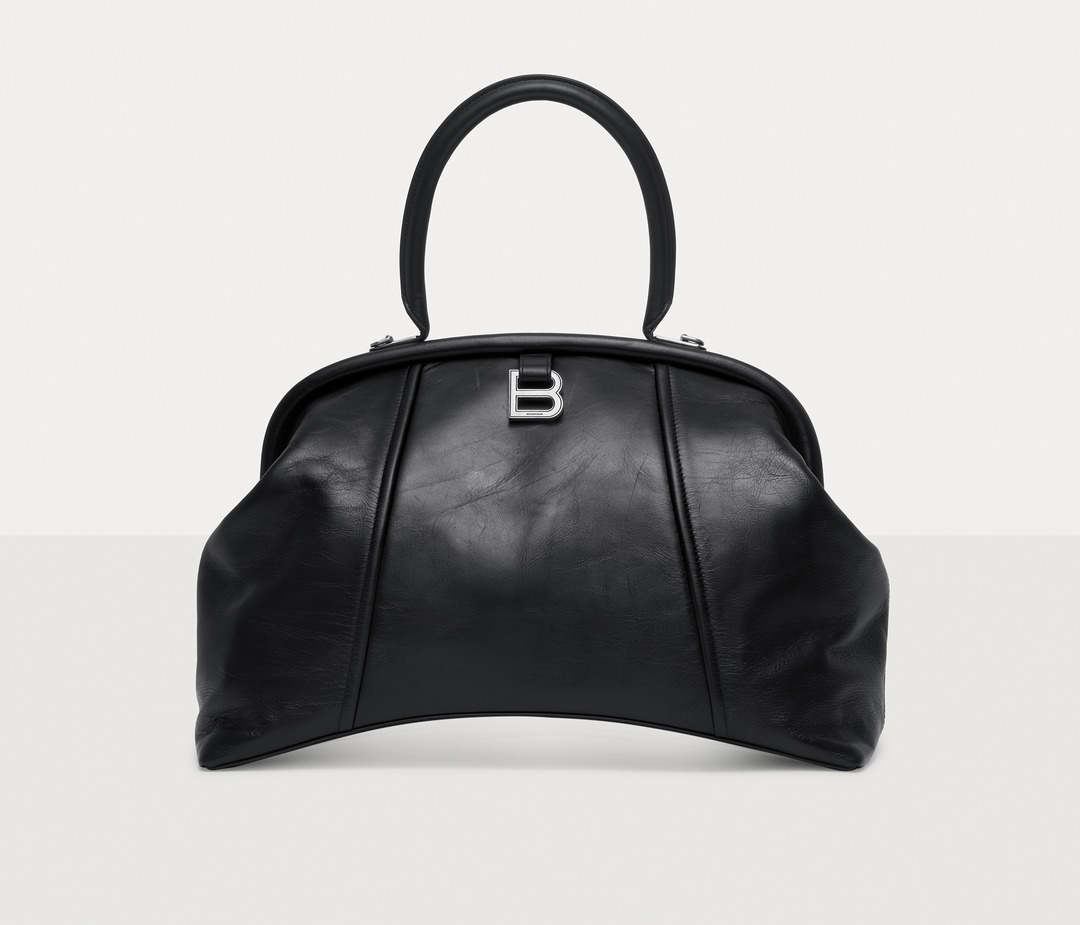 The large Editor continues the iconic arched base , inspired by the Basque-Waist waist-hugging fashion designed by the brand's founder Cristóbal Balenciaga; the Editor presents a crisp, soft and full bag shape, like a travel bag.
