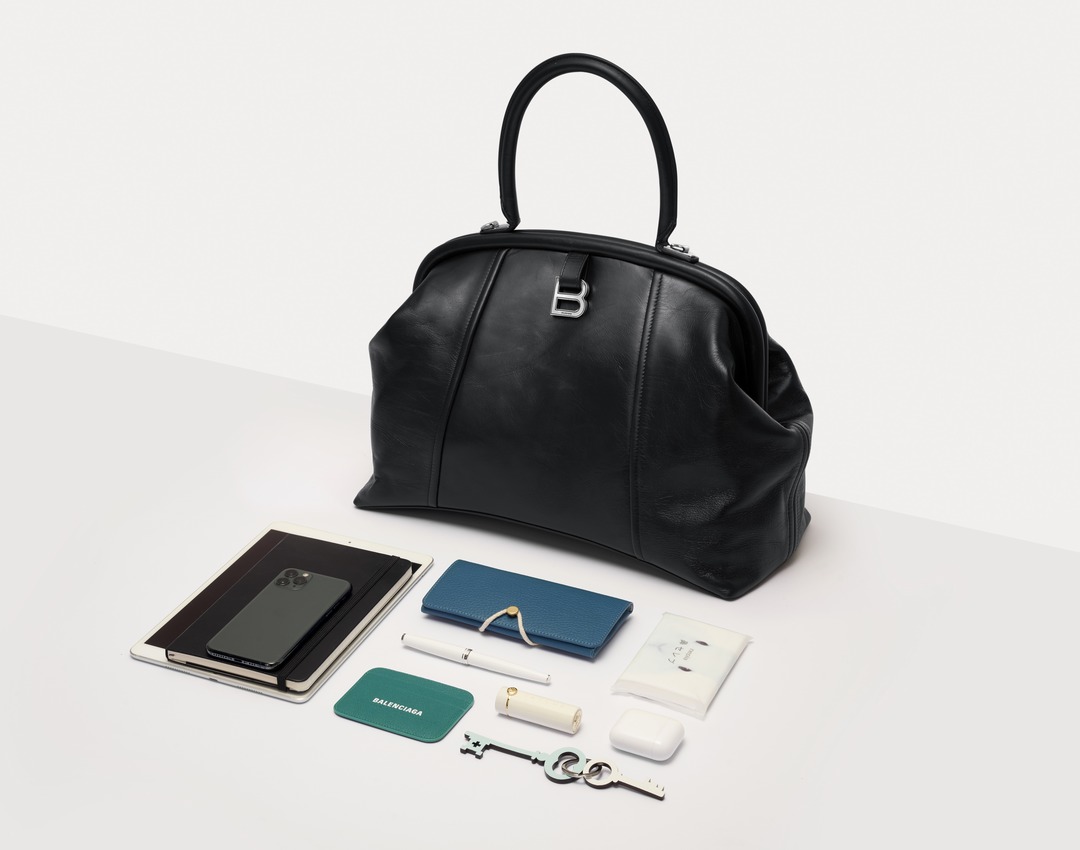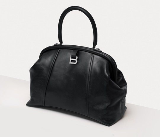Balenciaga's spring 22 collection introduces the new Editor handbag , which is reshaped based on the Hourglass bag - continuing the iconic arched base and metal "B" buckle , the lines of the bag have become rounded and full. The biggest highlight is the built-in magnetic frame at the bag opening , and the smooth lines echo the arched bottom of the bag.
