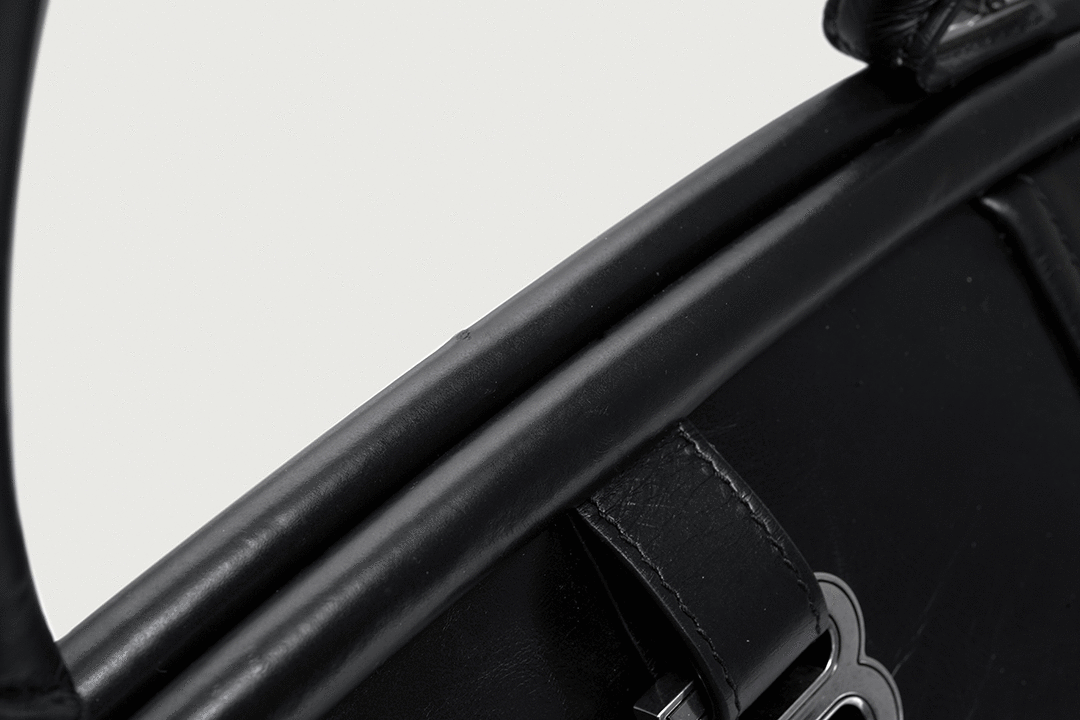 This handbag is made of Paper Calfskin , and you can clearly see the striped texture on the leather, which is like the folds of kraft paper. The black semi-matte texture creates a strong aura.