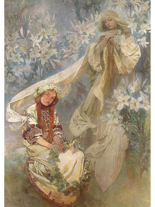 Right: Madonna of the Lilies, Mucha, 1905