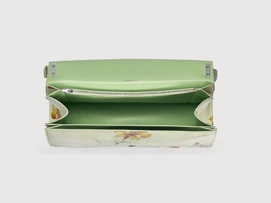 As an oversized bag, this Crush shoulder bag has a large storage space that is almost comparable to a gym bag, and it is easy to store a 13-inch laptop. The bag is lined with mint green lambskin with a very healing tone . It has a main compartment, front and back compartments, and a zipper compartment. The hand-painted oil edges in the same color highlight the exquisite details.