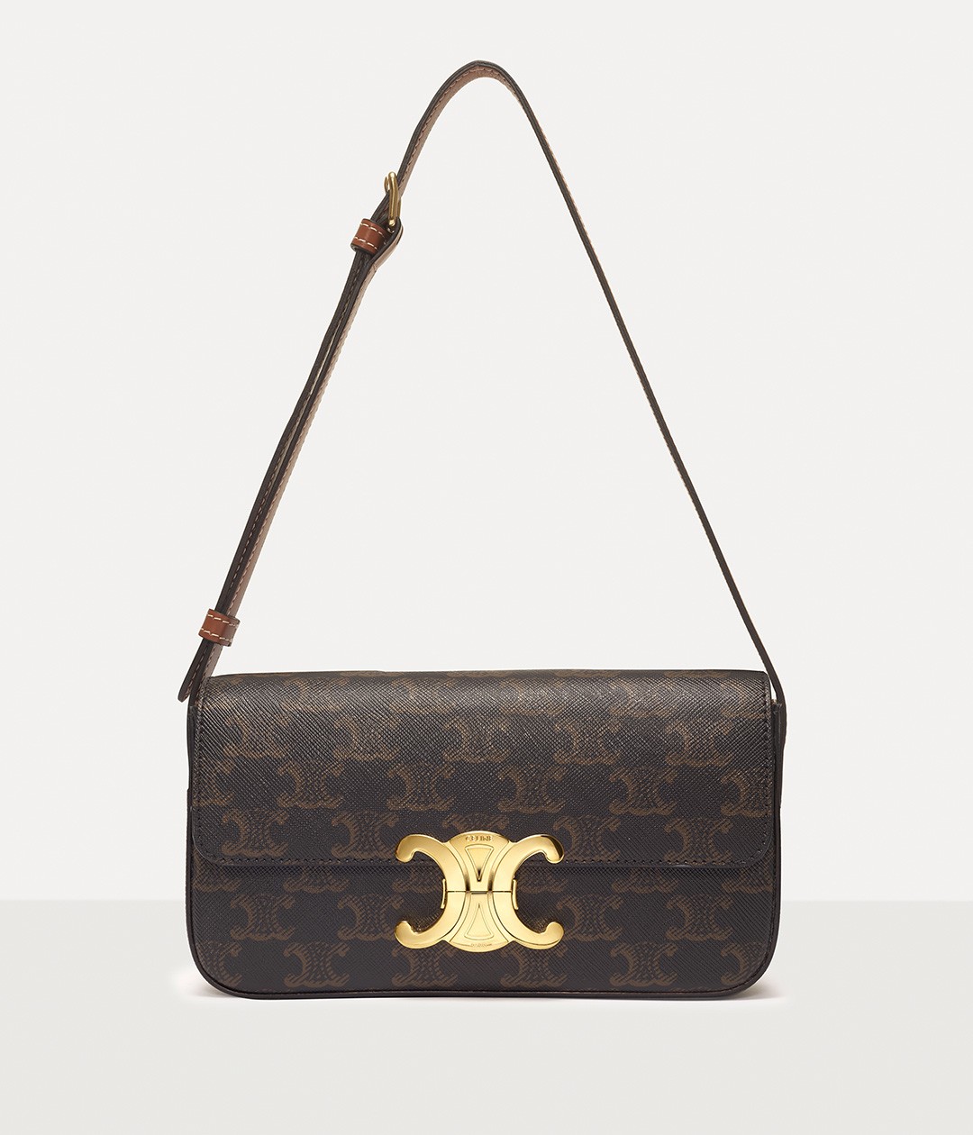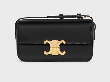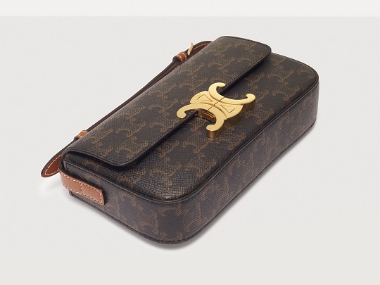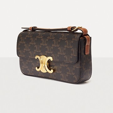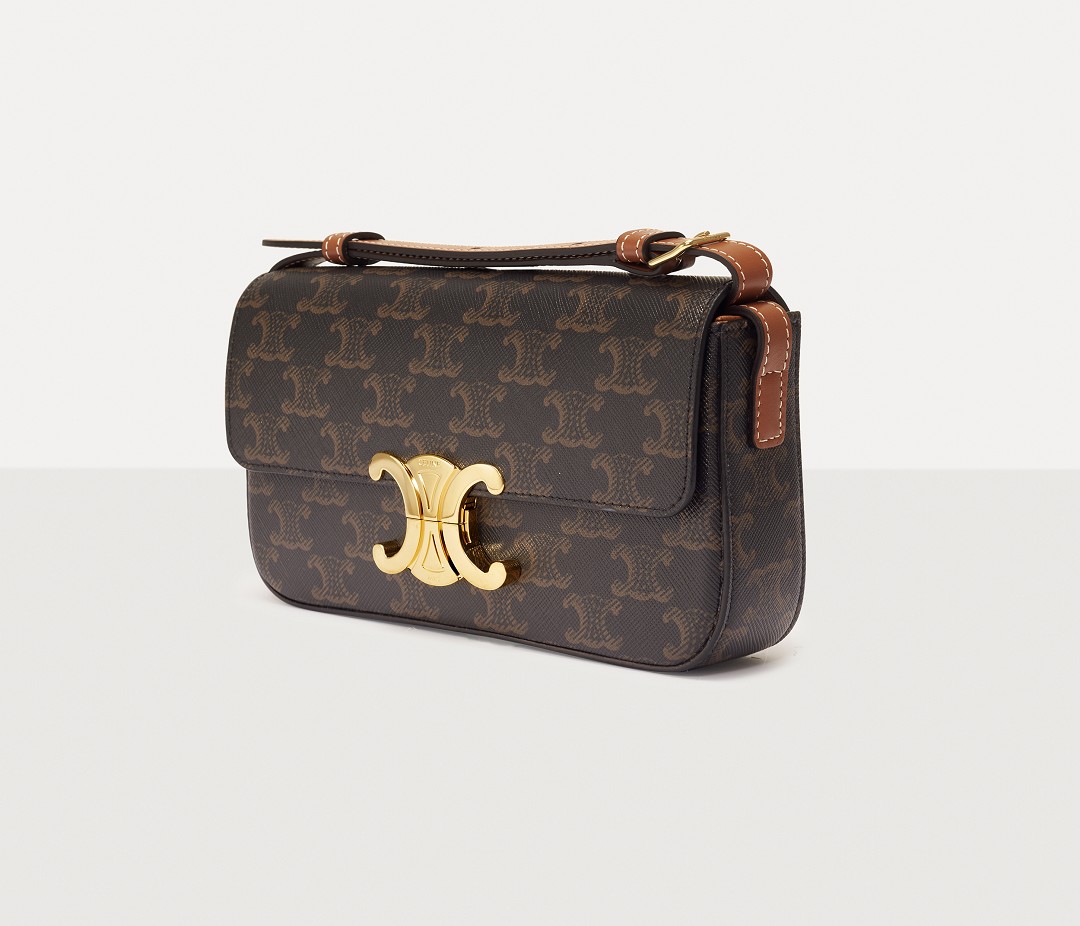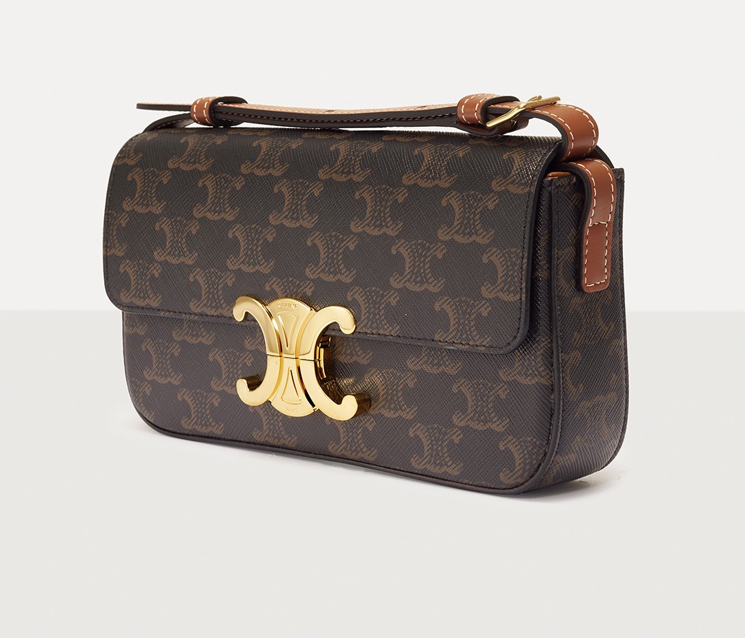 CELINE 's popular Triomphe handbag has launched a new shoulder bag style. The classic Box flap bag has evolved into a small and slender bag . The retro monogram canvas is embellished with a recognizable golden Triomphe buckle . The one-shoulder carrying method is comfortable and unconventional.