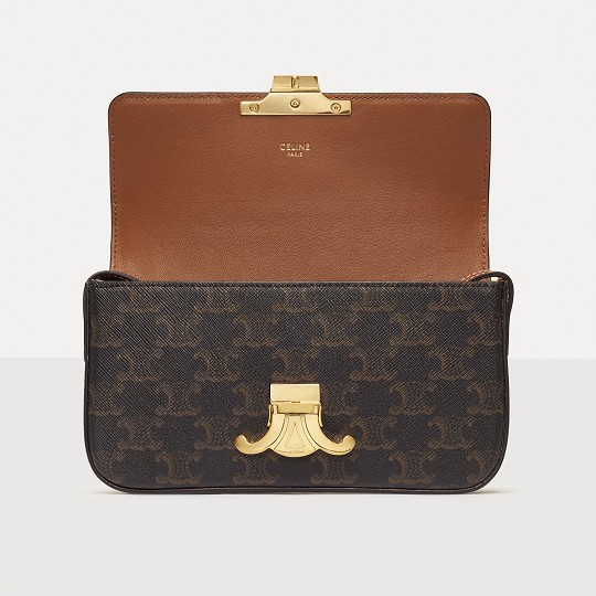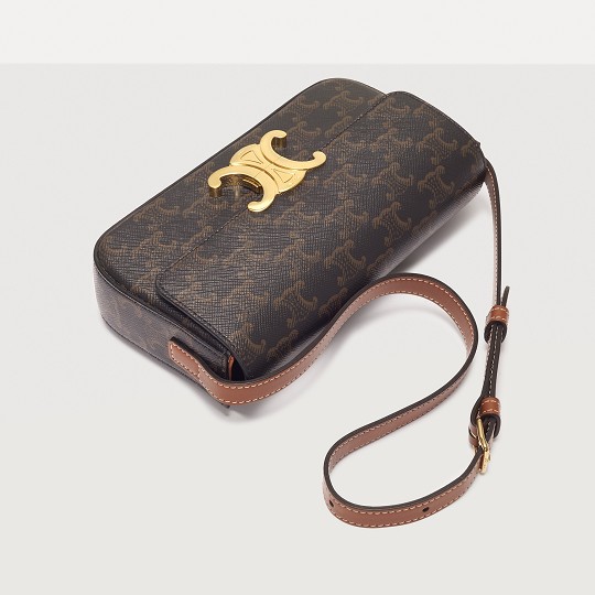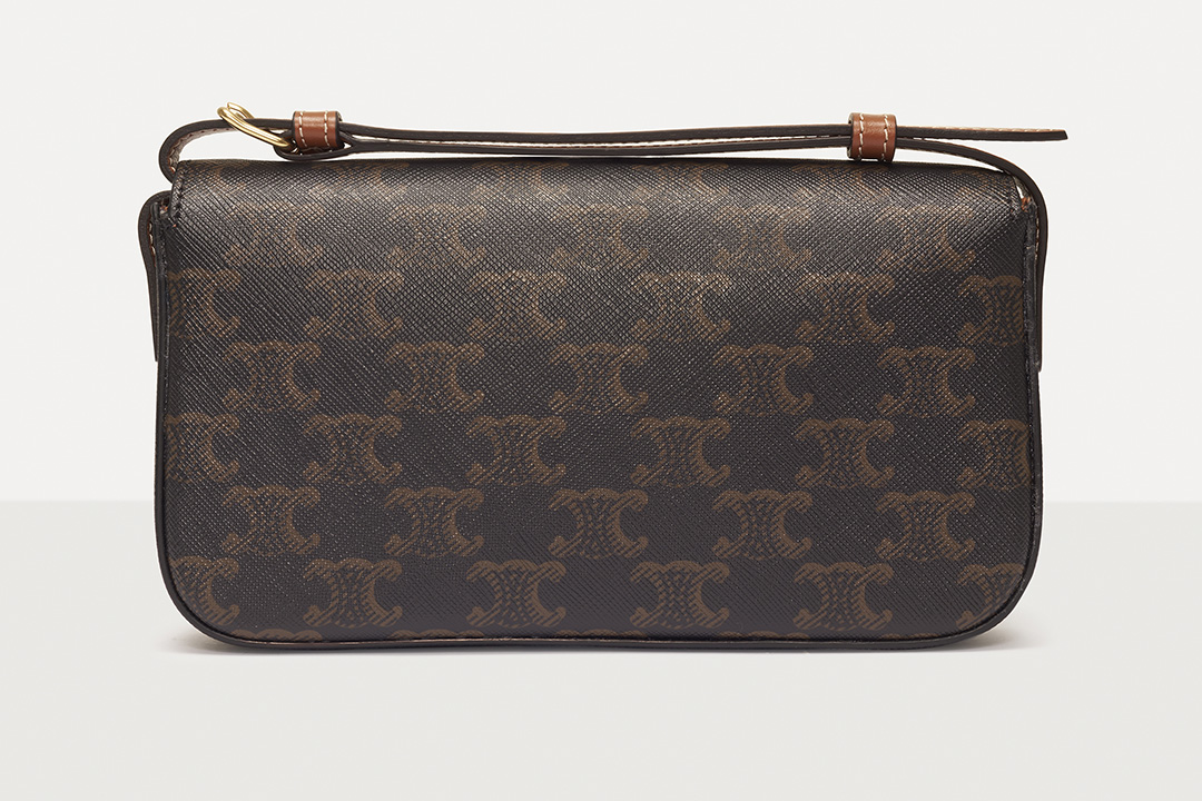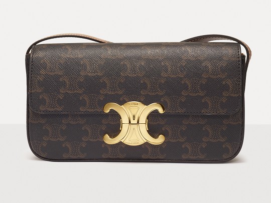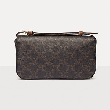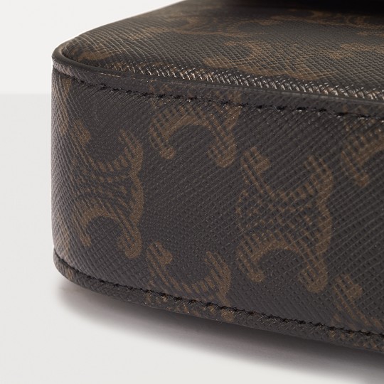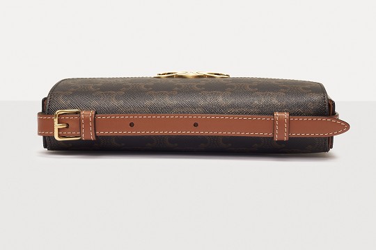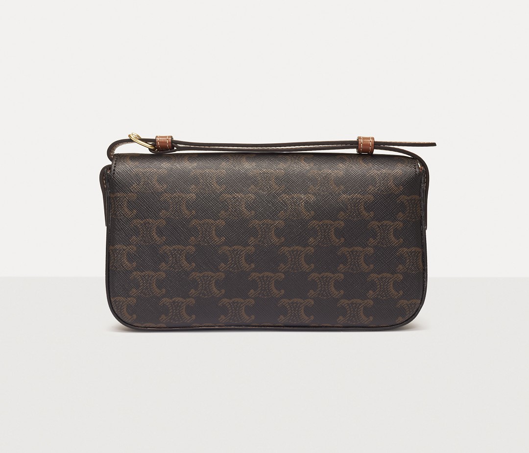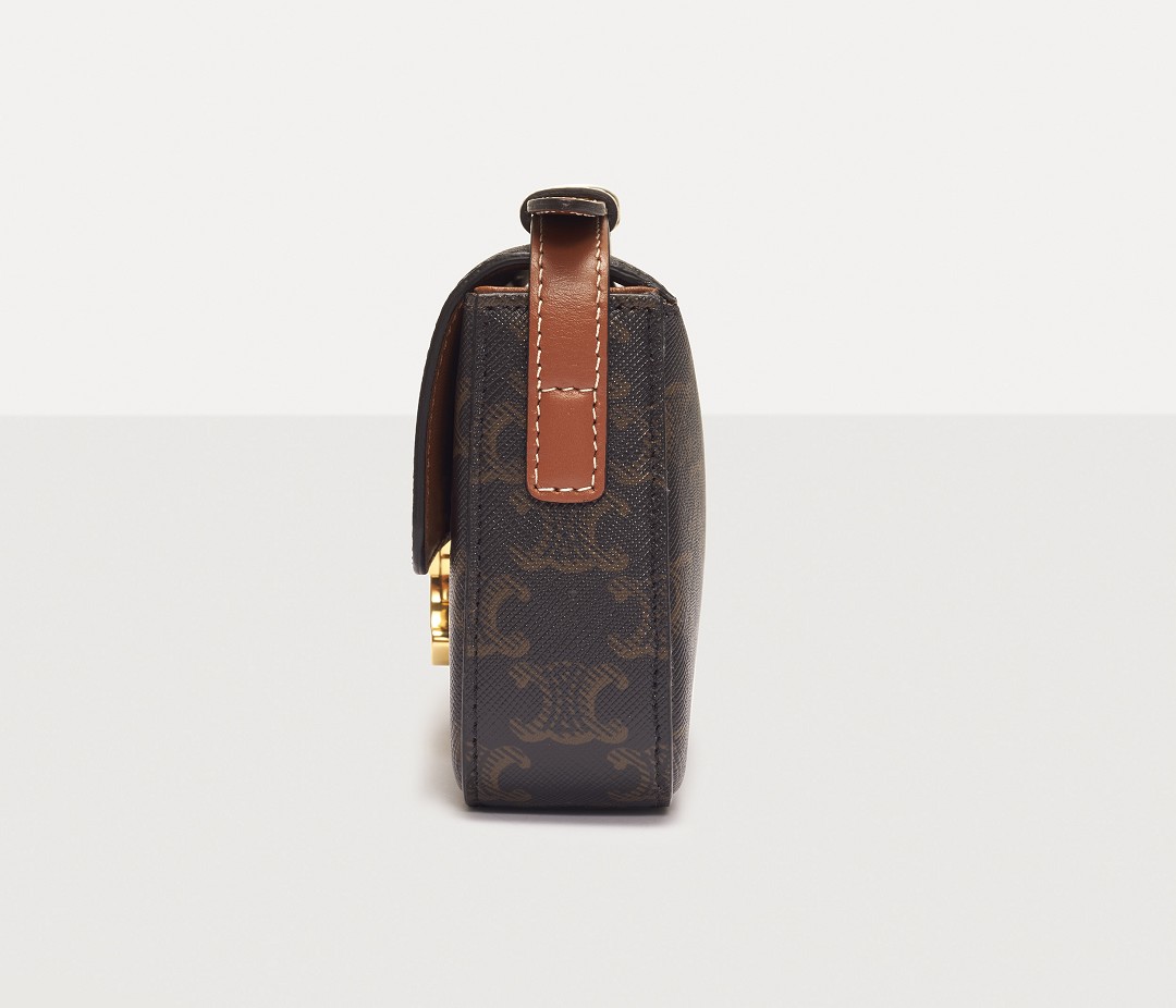 CELINE 's popular Triomphe handbag has launched a new shoulder bag style. The classic Box flap bag has evolved into a small and slender bag . The retro monogram canvas is embellished with a recognizable golden Triomphe buckle . The one-shoulder carrying method is comfortable and unconventional.
