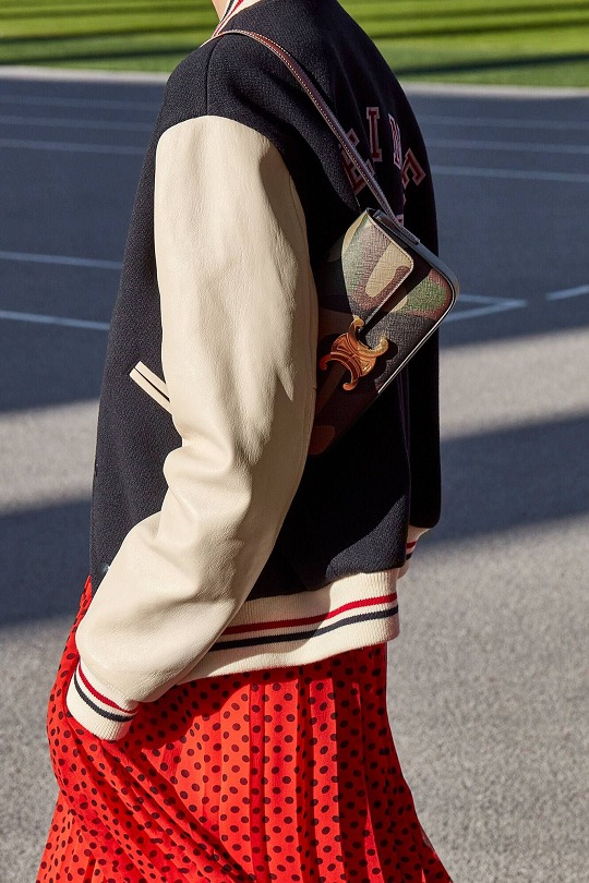 The Triomphe Shoulder shoulder bag made its debut on the 2021 Spring/Summer catwalk, compressing the original nearly square shape into an East-West slender shape , making the bag fit better on the body. For the first time, a short shoulder strap design was used , and the way of carrying it under the armpit combines retro elegance with street cool.
