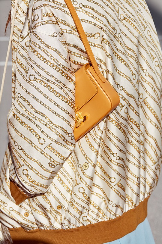 The shoulder strap of the bag is made of brown calfskin , embellished with exposed stitching and black oil edges. The short shoulder strap design caters to the current trend of underarm bags, creating a relaxed and lazy feeling, especially suitable for light travel in summer. There are 3 adjustment buckles on the shoulder strap , and the length can be fine-tuned to meet different styling needs.