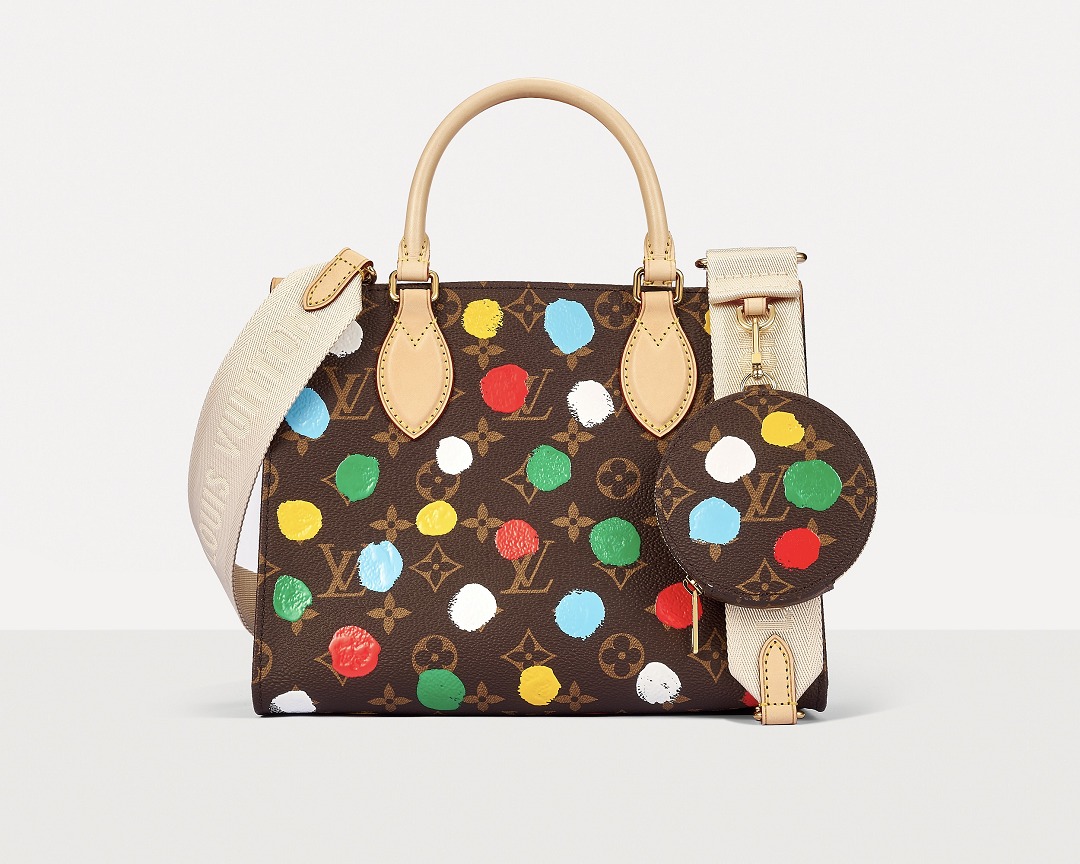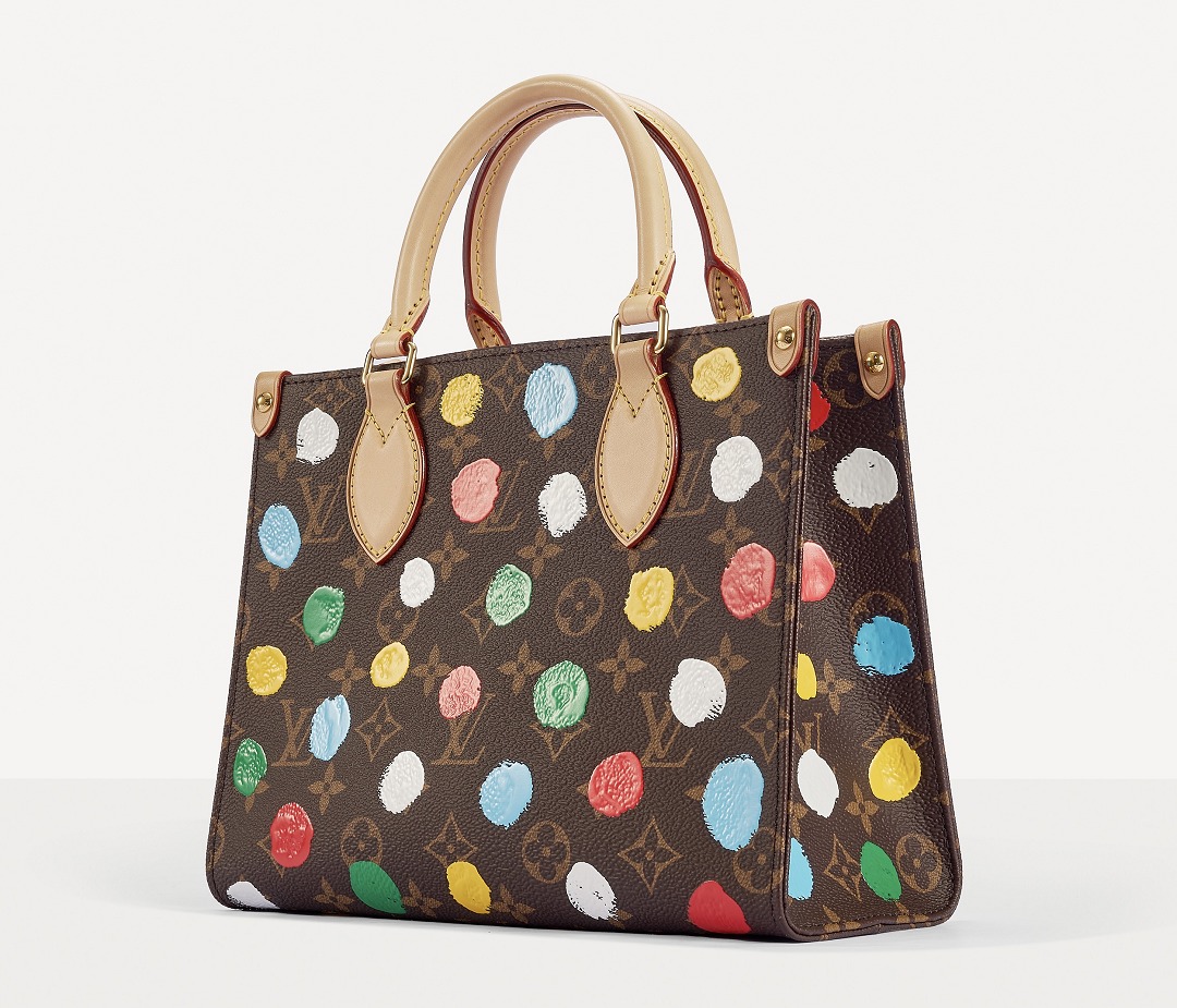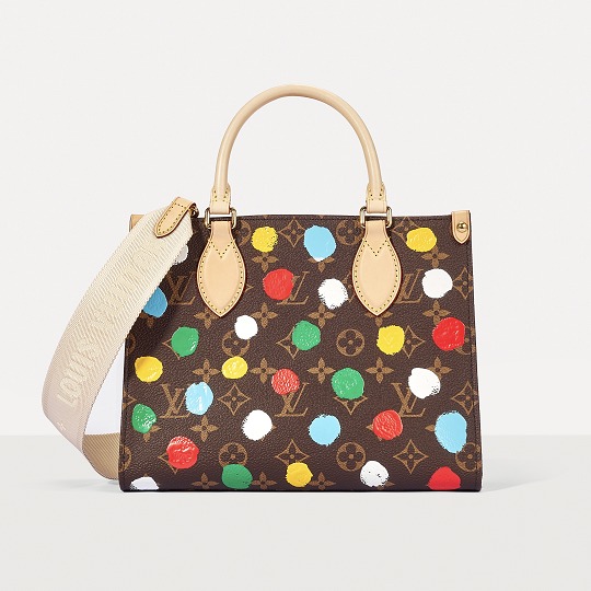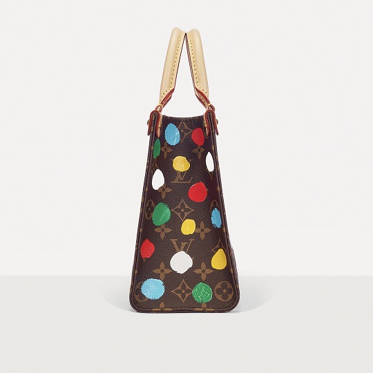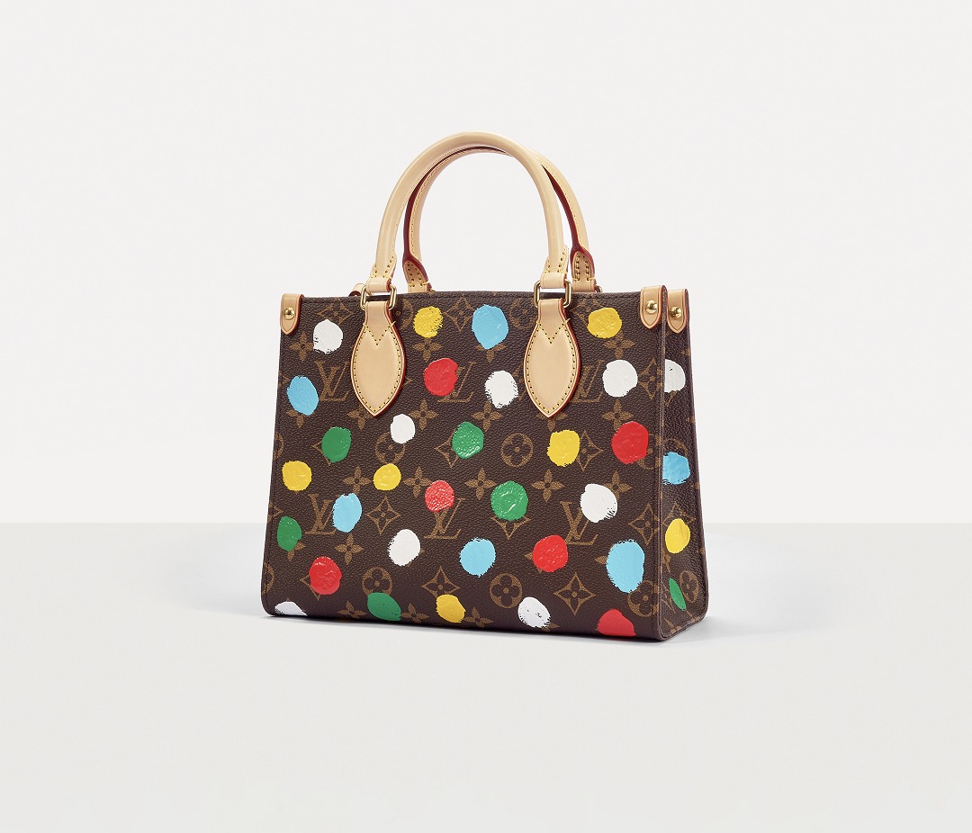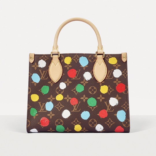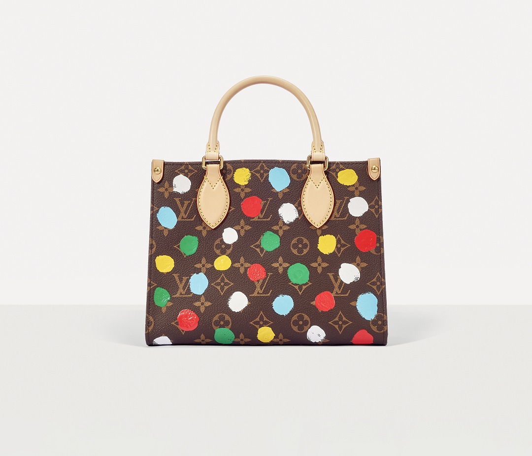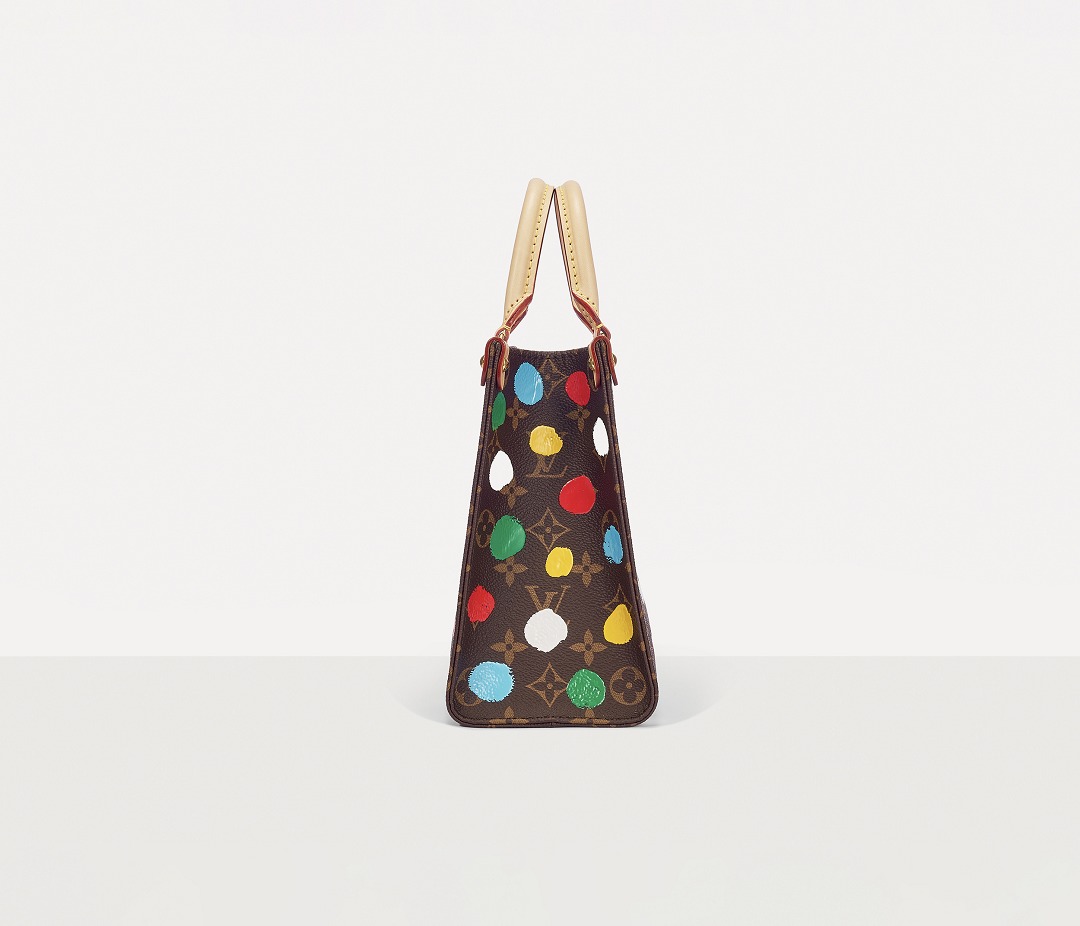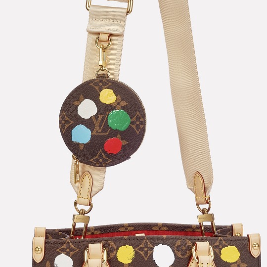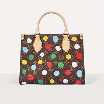 This OnTheGo small handbag is from the Louis Vuitton x Yayoi Kusama collaboration series . It depicts Yayoi Kusama's iconic hand-painted polka dot pattern on the classic Monogram canvas. The colorful color spectrum blends with artistic imagination, opening up a unique color game as midsummer approaches.
