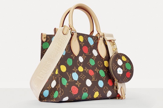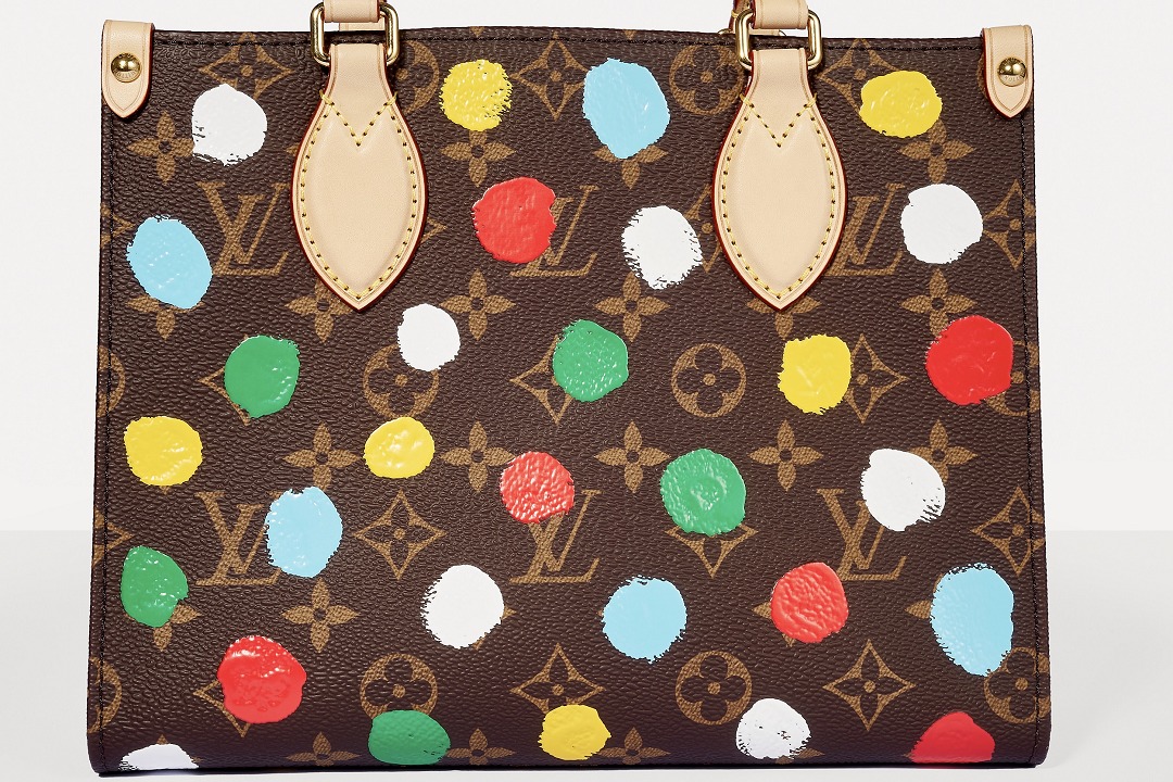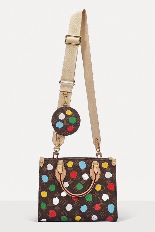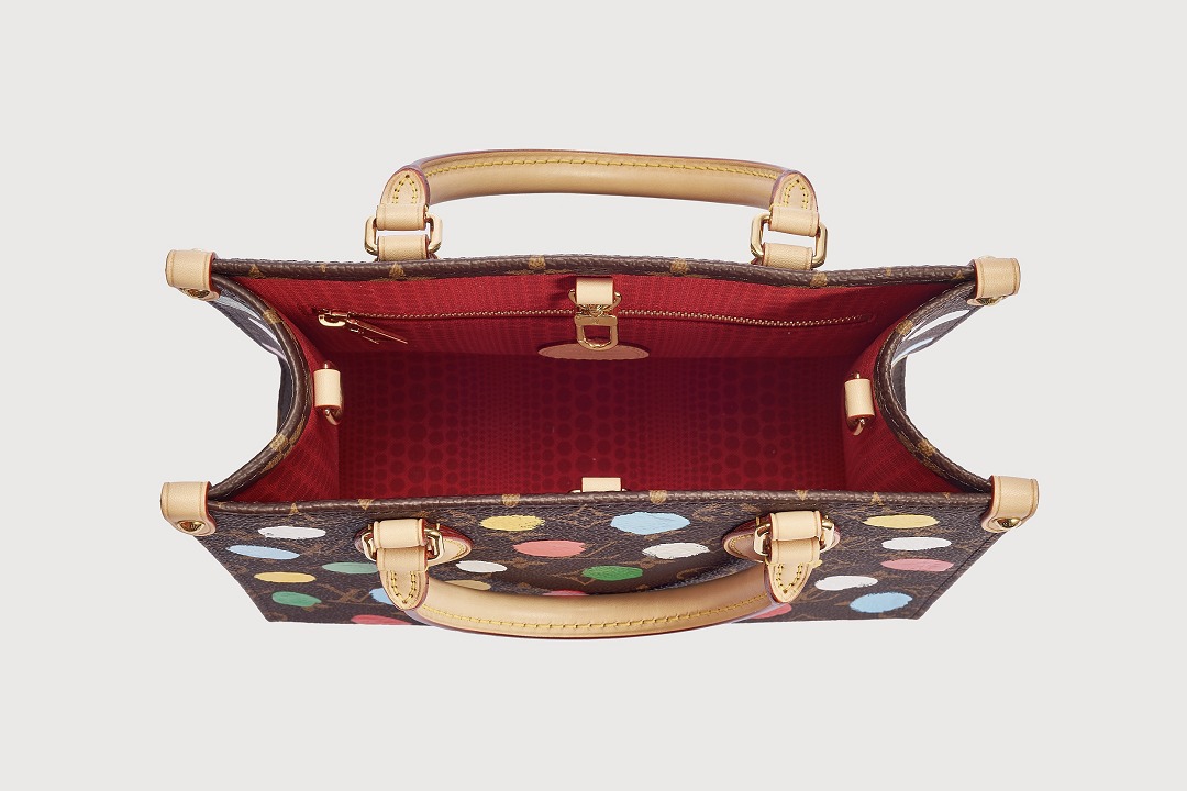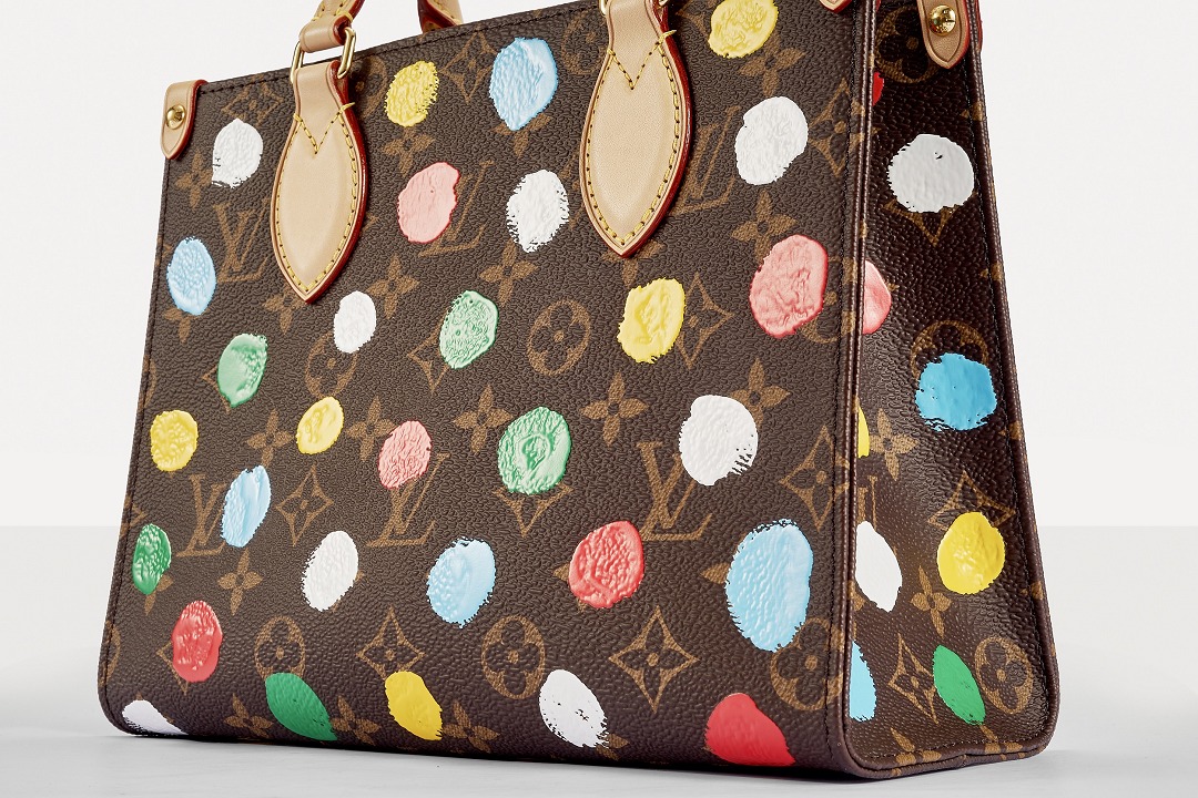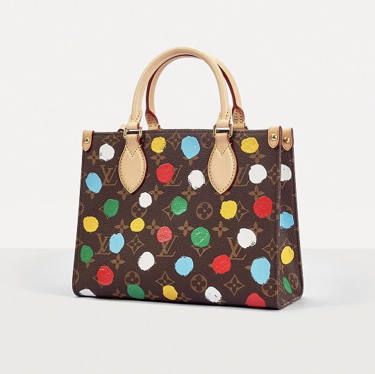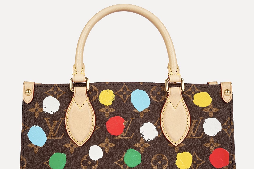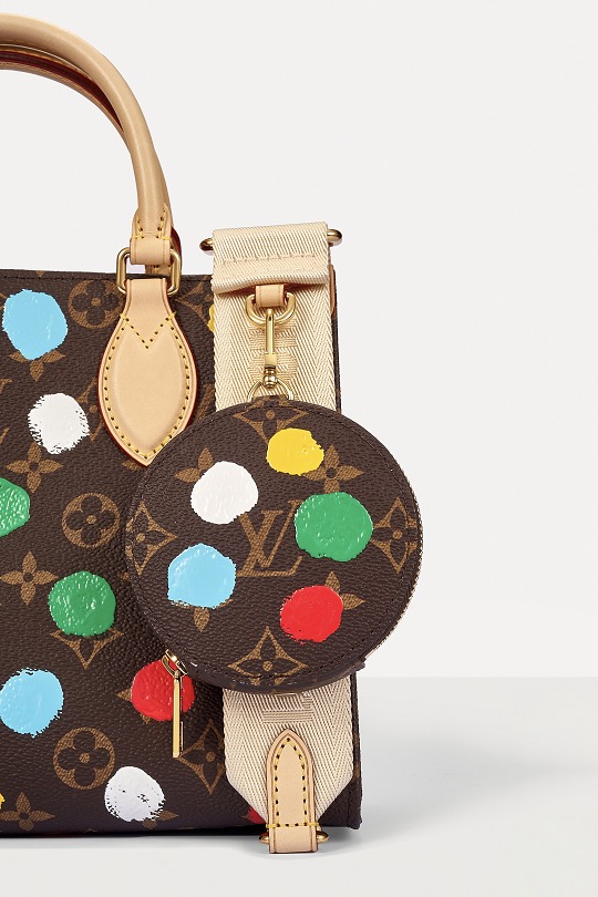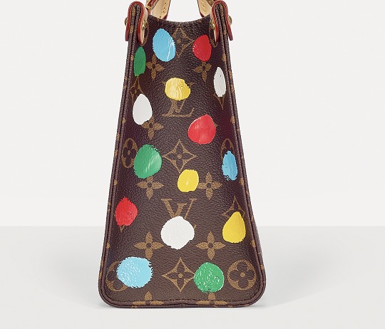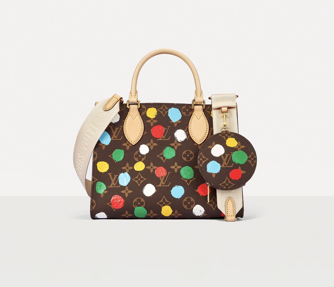 This OnTheGo small handbag is from the Louis Vuitton x Yayoi Kusama collaboration series . It depicts Yayoi Kusama's iconic hand-painted polka dot pattern on the classic Monogram canvas. The colorful color spectrum blends with artistic imagination, opening up a unique color game as midsummer approaches.