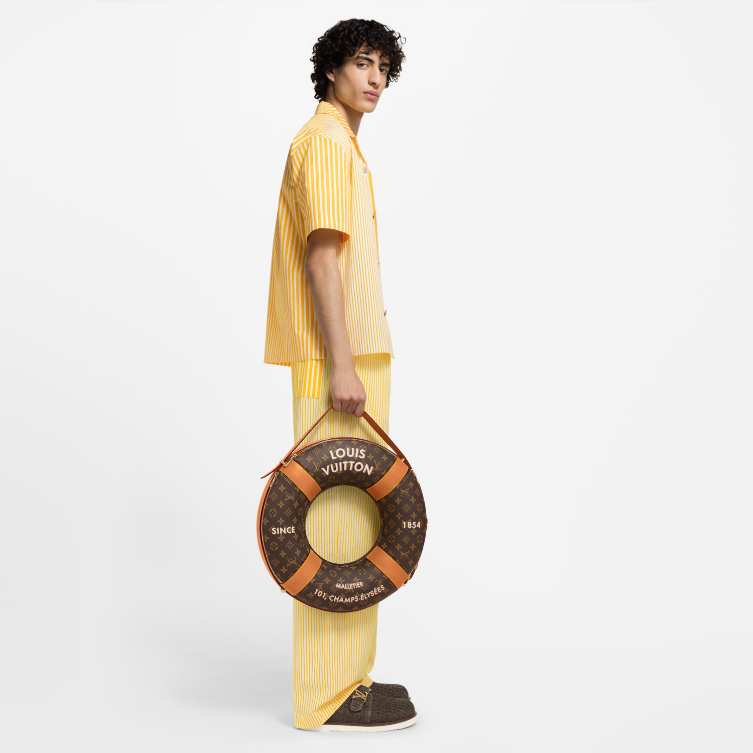LV's 2025 Early Fall Men's Collection draws inspiration from sailing trips and Miami Beach style, launching this Lifebuoy bag - the Monogram canvas is used to create a full and round lifebuoy shape, and the four cowhide trims make it more vivid. The bag has three independent zipper compartments and an adjustable shoulder strap for shoulder, crossbody and hand carry. Taking this "lifebuoy" to an island vacation will definitely attract a lot of attention.